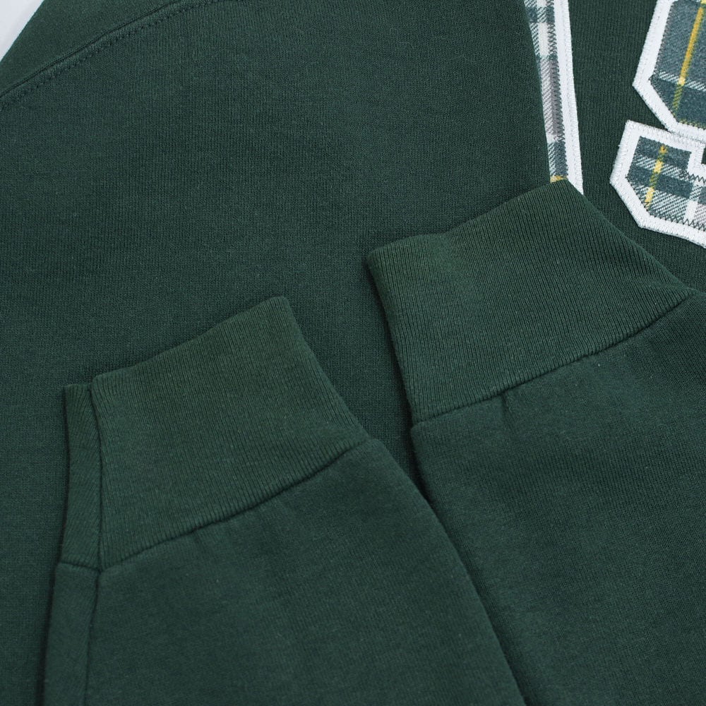 カレッジスウェットの王道を行くかと思いきや、まさかのチェック柄でおめかし