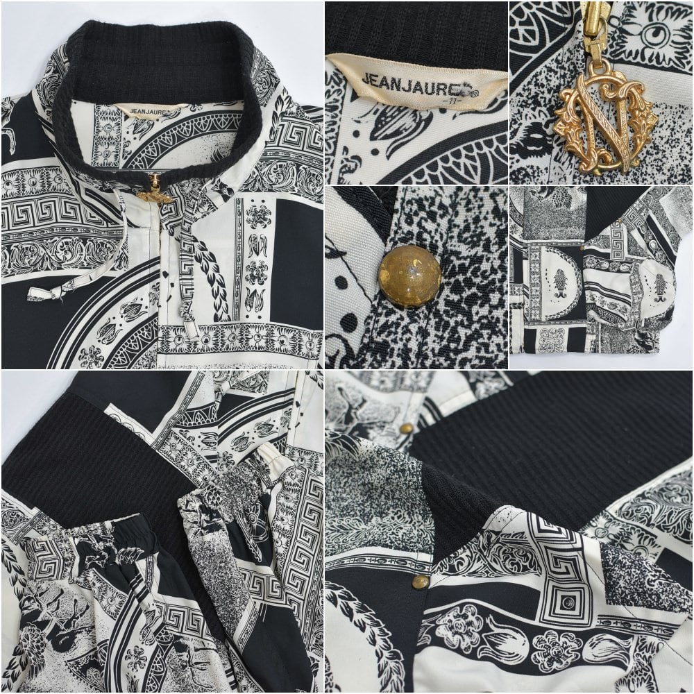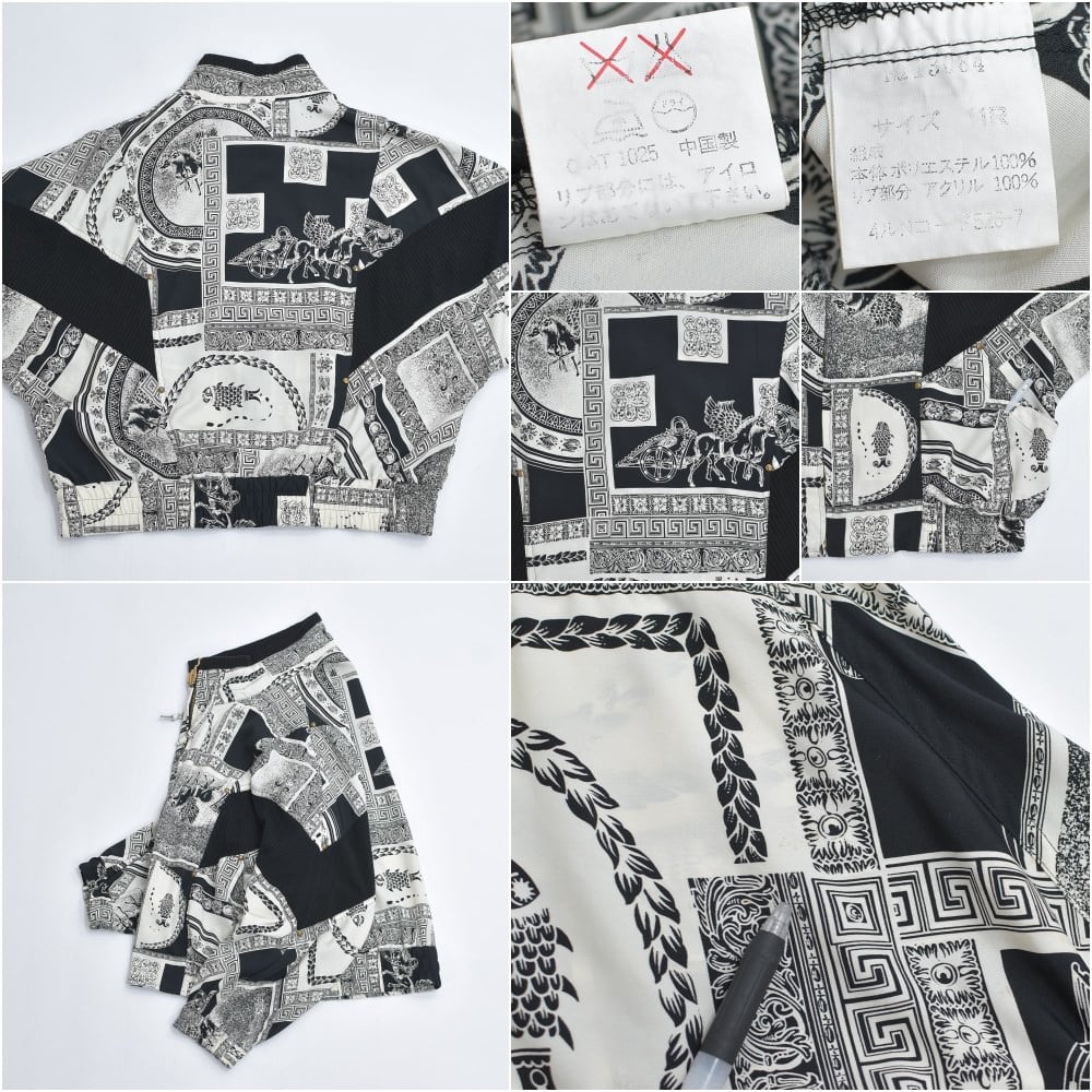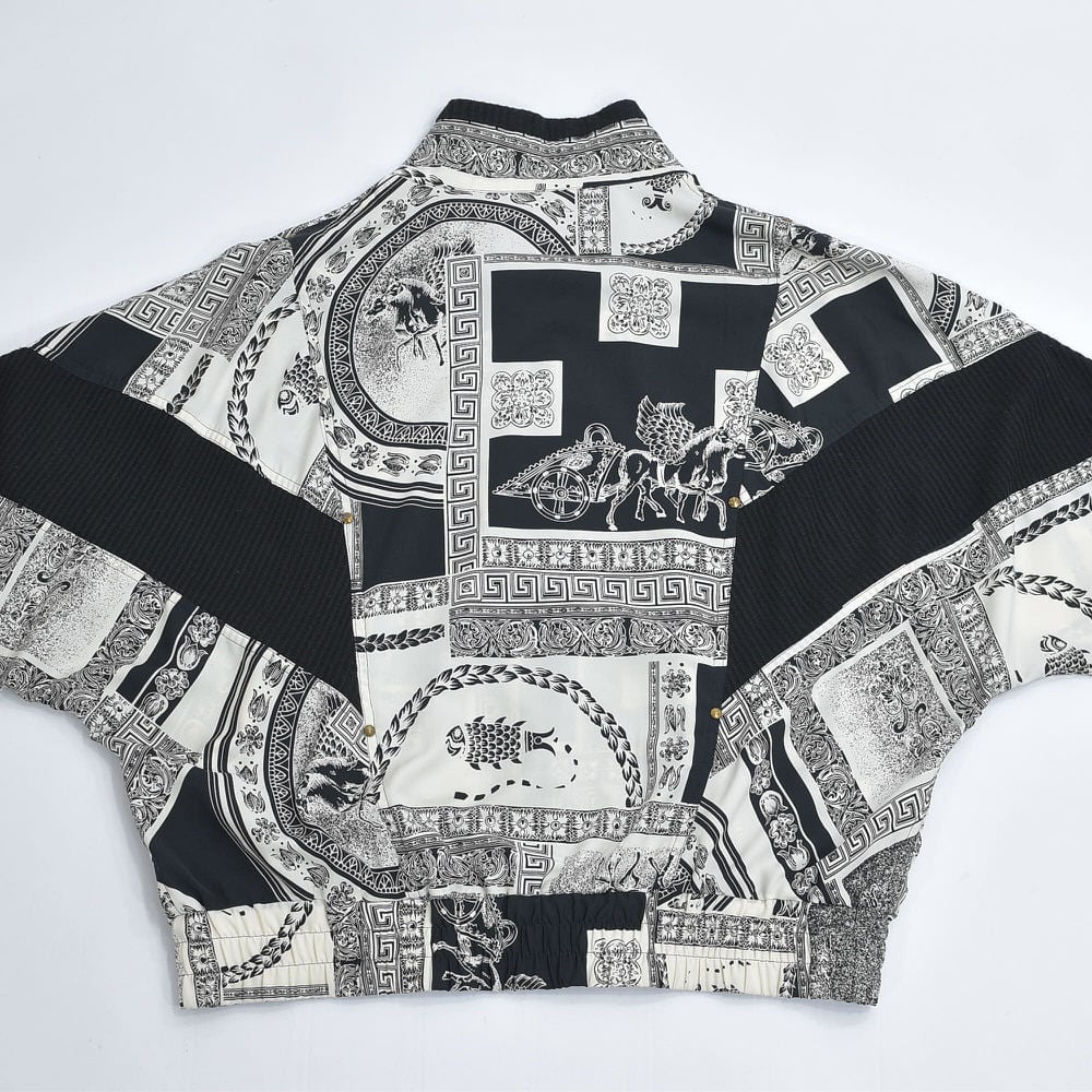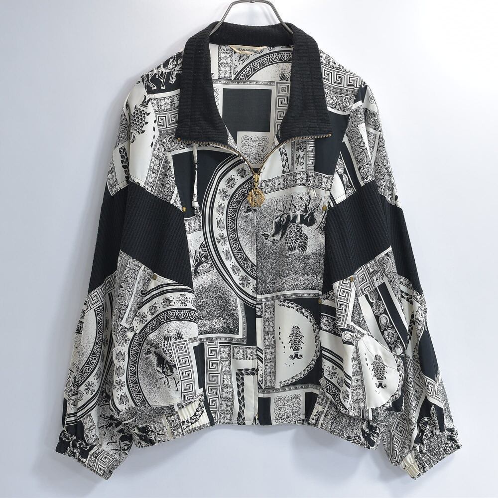 80~90s JEAN JAURES ジャン・ジョレス ギリシャ神話 古代ローマ風 総柄デザイン フルジップ ドルマンスリーブ ブルゾン モノトーン ジャパンヴィンテージ ビンテージ 古着 レディースL相当