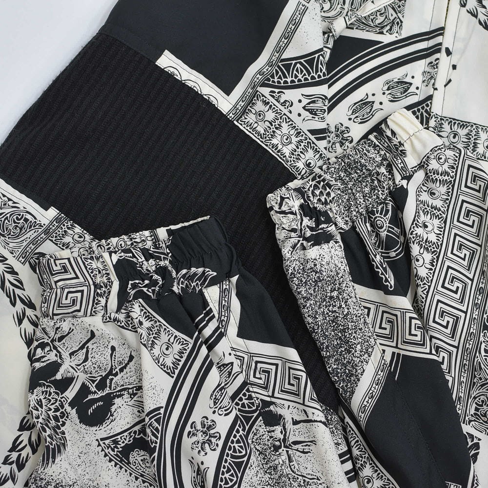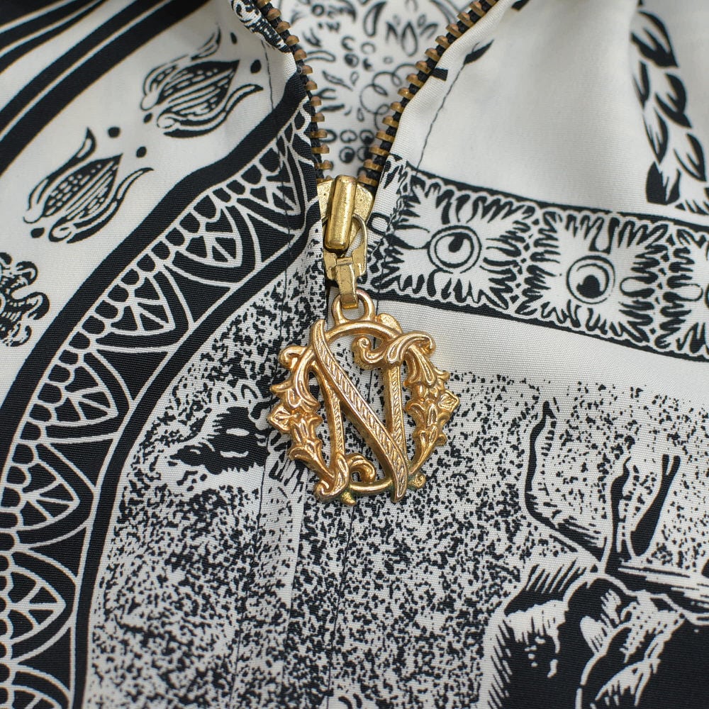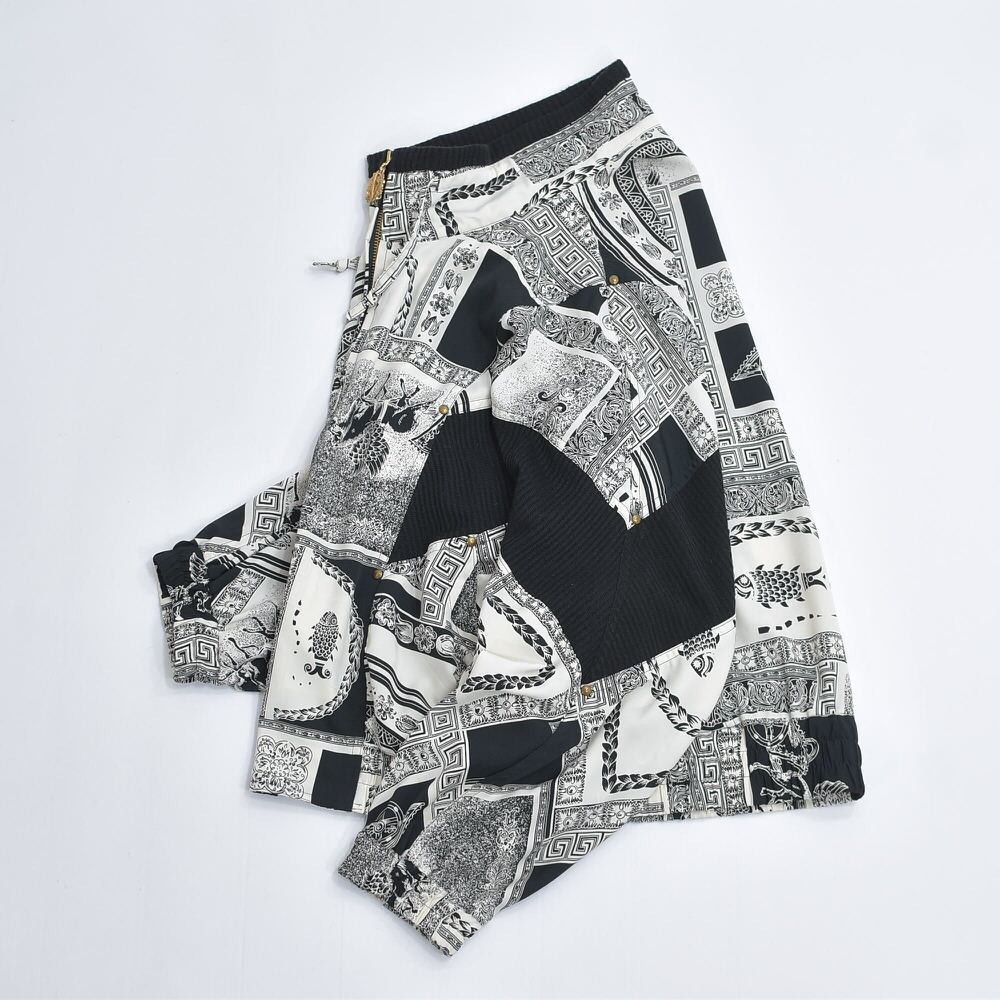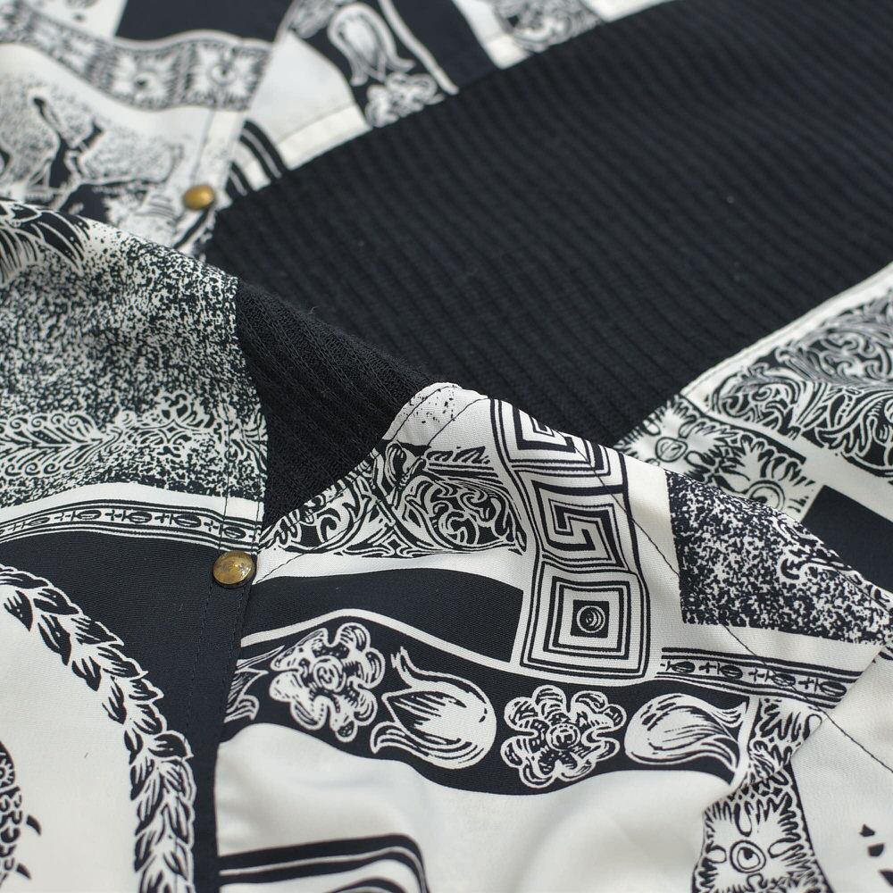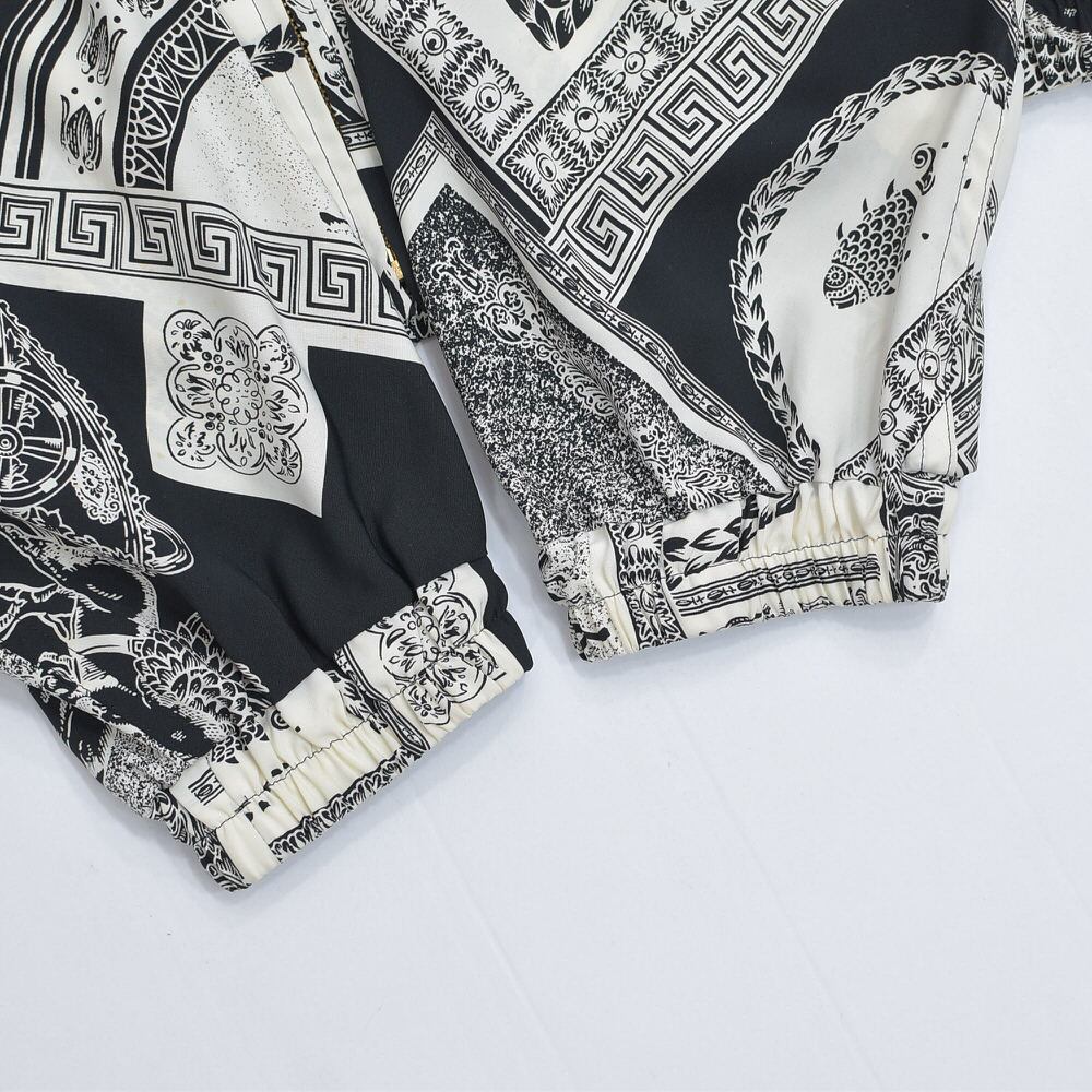 80~90s JEAN JAURES ジャン・ジョレス ギリシャ神話 古代ローマ風 総柄デザイン フルジップ ドルマンスリーブ ブルゾン モノトーン ジャパンヴィンテージ ビンテージ 古着 レディースL相当