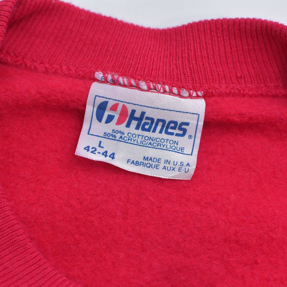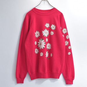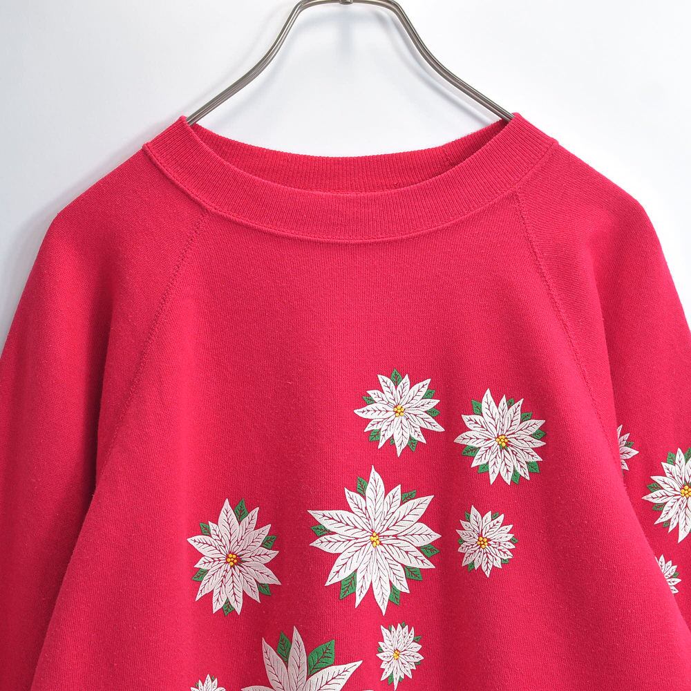 80s アメリカ製 Hanes ヘインズ MORNING SUN ポインセチア 花柄 フラワーパターン スウェット シャツ クリスマス ウィンター レッド ヴィンテージ ビンテージ 古着 メンズLサイズ