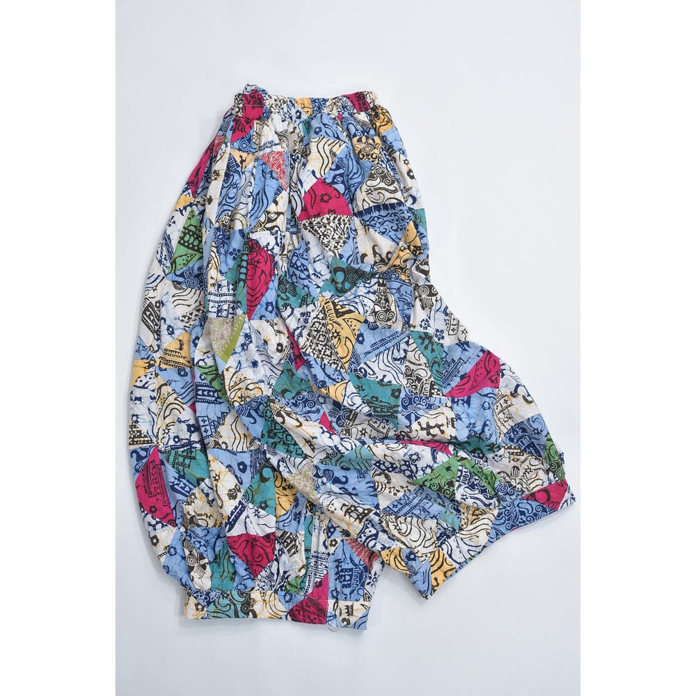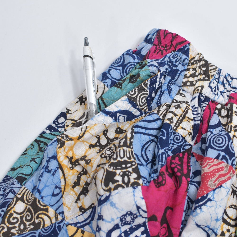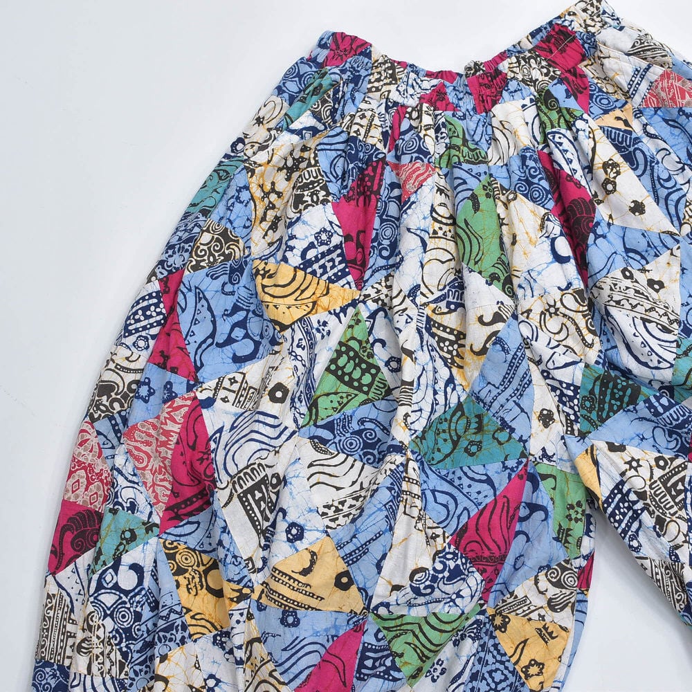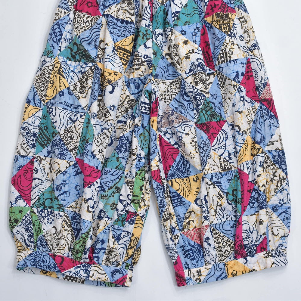 Remake リメイク ハンドメイド バティック柄 デザイン パッチワーク キルトトップ スーパーバルーン シルエット イージーパンツ 再構築 ツギハギ 裏地付き ユニセックスサイズ W66〜110