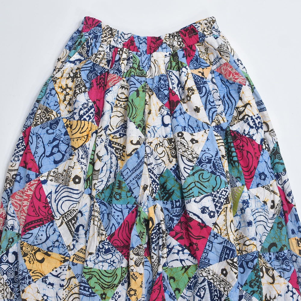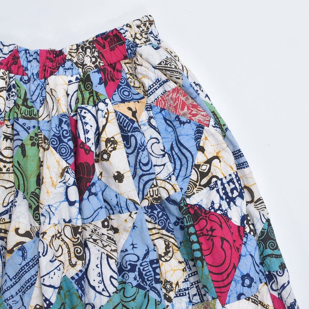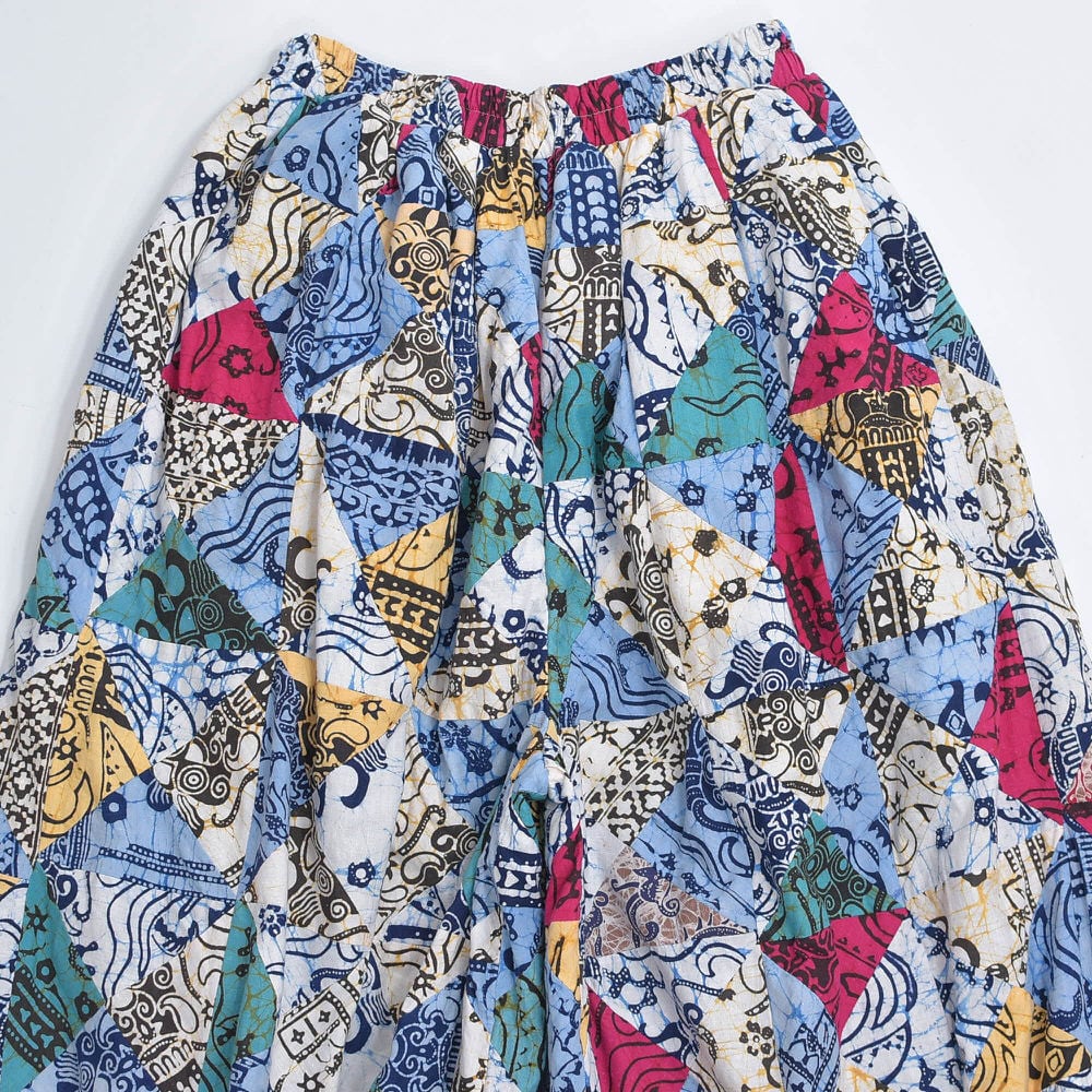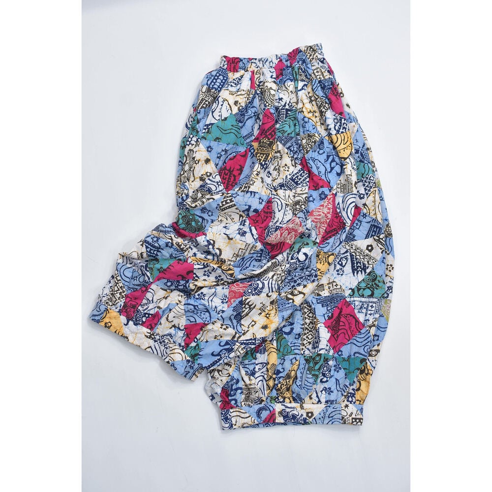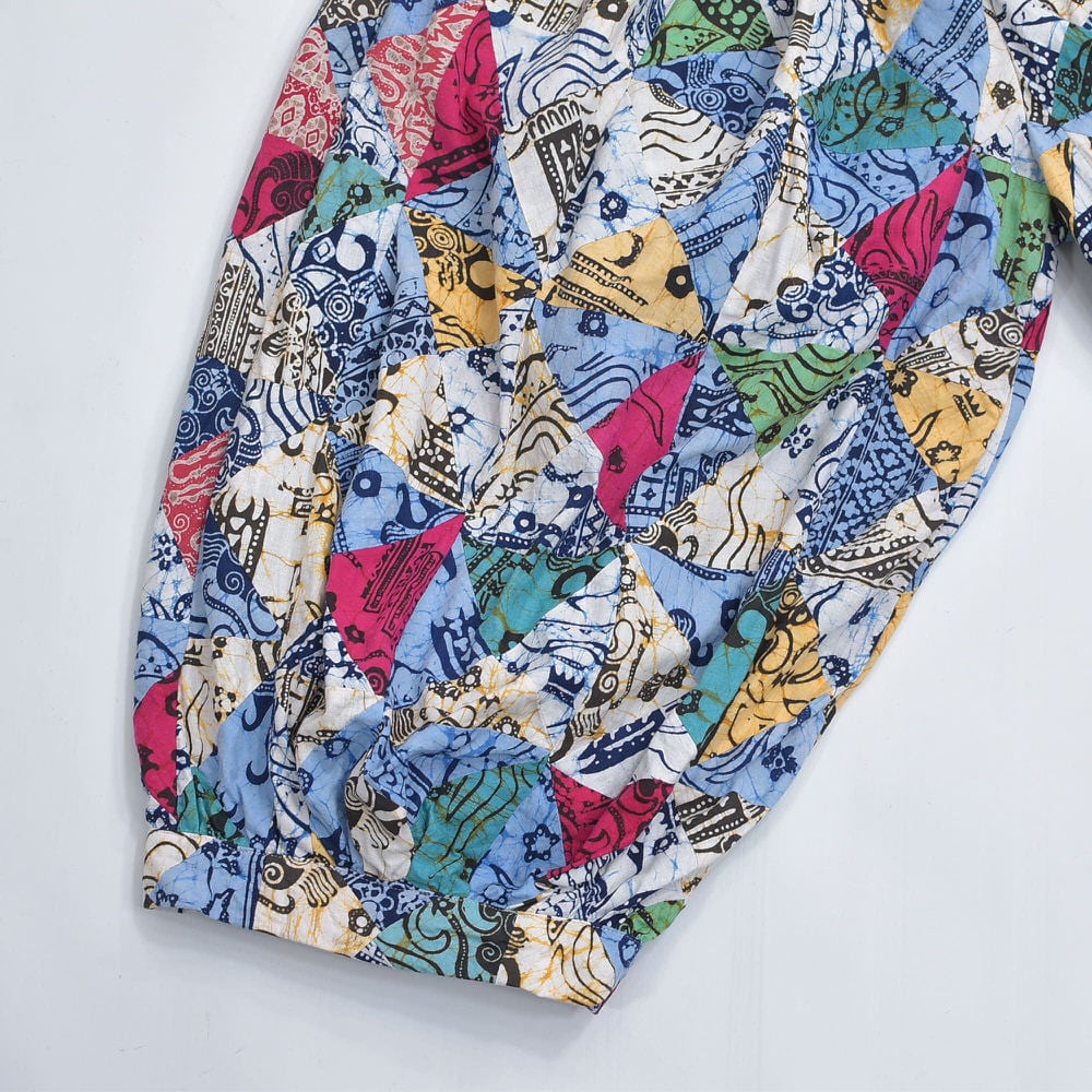 Remake リメイク ハンドメイド バティック柄 デザイン パッチワーク キルトトップ スーパーバルーン シルエット イージーパンツ 再構築 ツギハギ 裏地付き ユニセックスサイズ W66〜110
