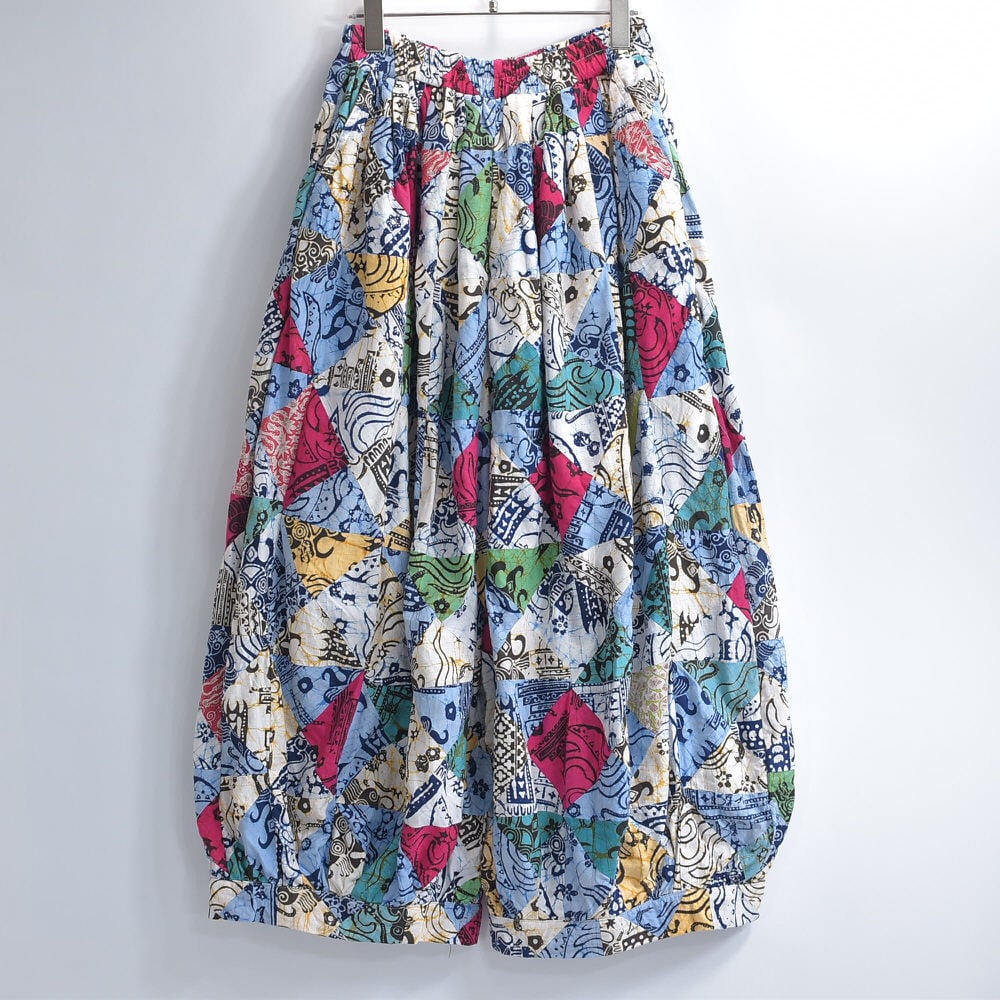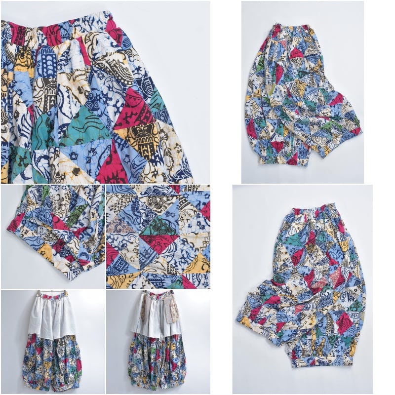Remake リメイク ハンドメイド バティック柄 デザイン パッチワーク キルトトップ スーパーバルーン シルエット イージーパンツ 再構築 ツギハギ 裏地付き ユニセックスサイズ W66~110
