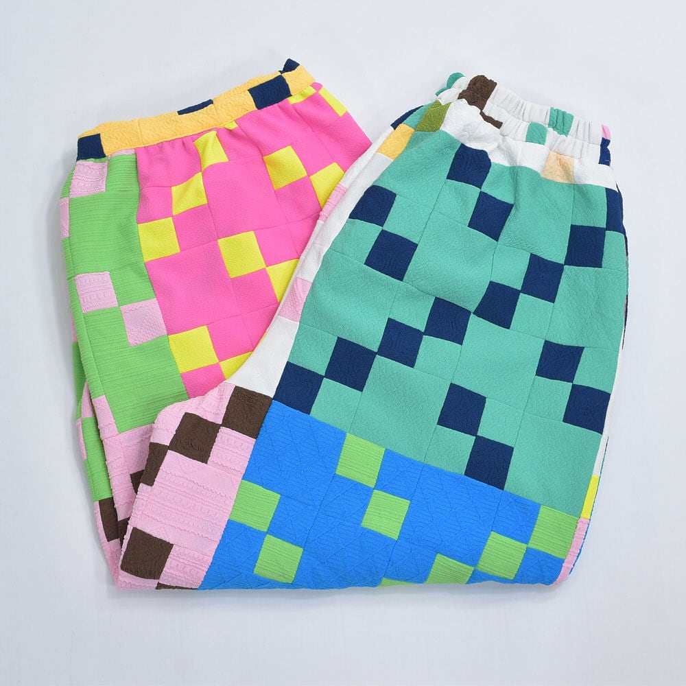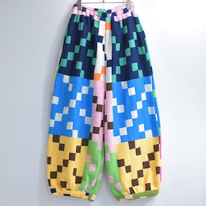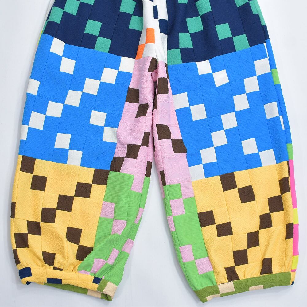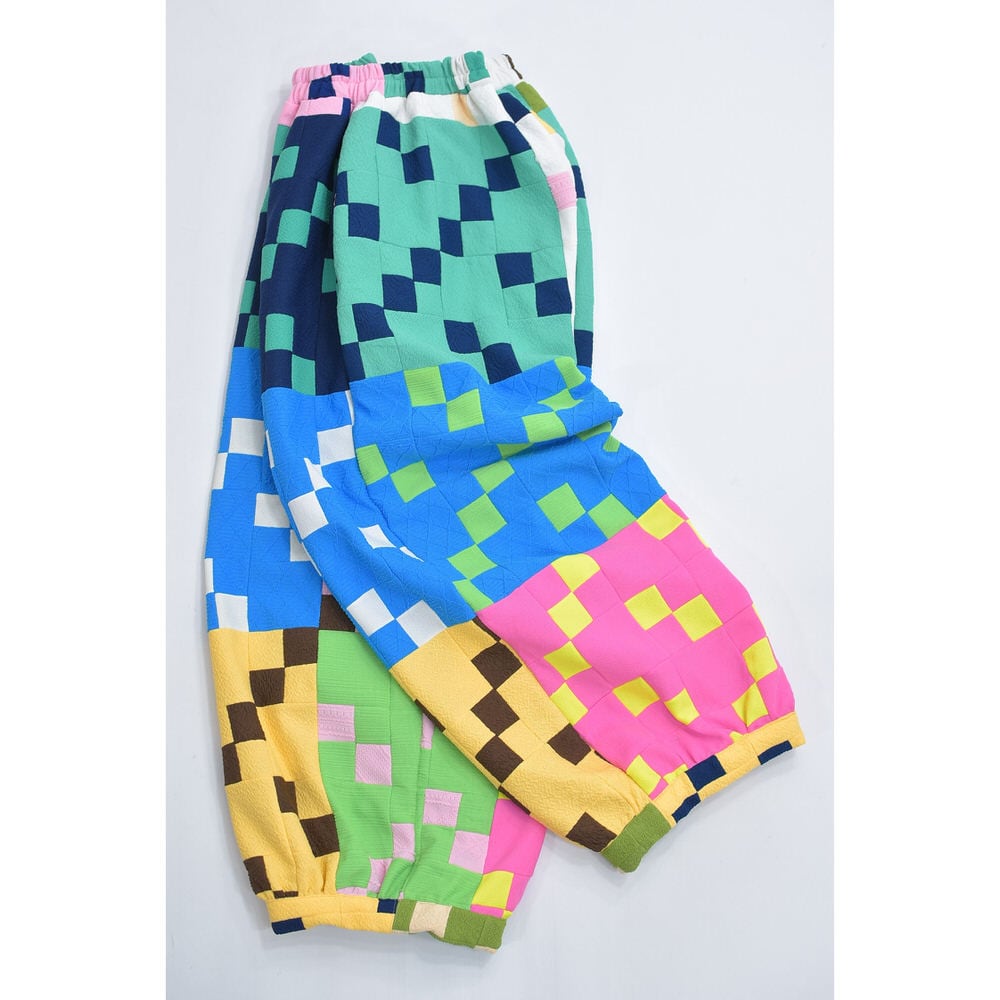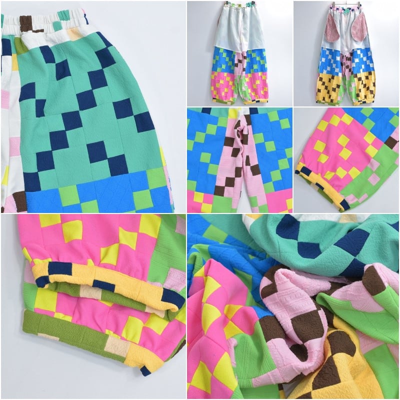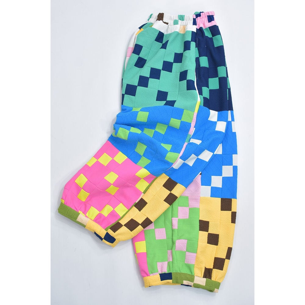 Remake リメイク ハンドメイド チェッカーパターン パッチワーク キルトトップ デザイン バルーンシルエット イージーパンツ 再構築 ツギハギ 裏地付き ユニセックスサイズ W66~106cm