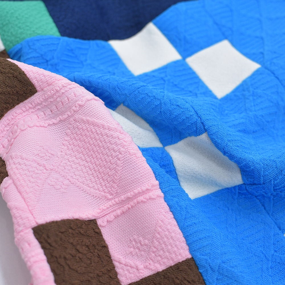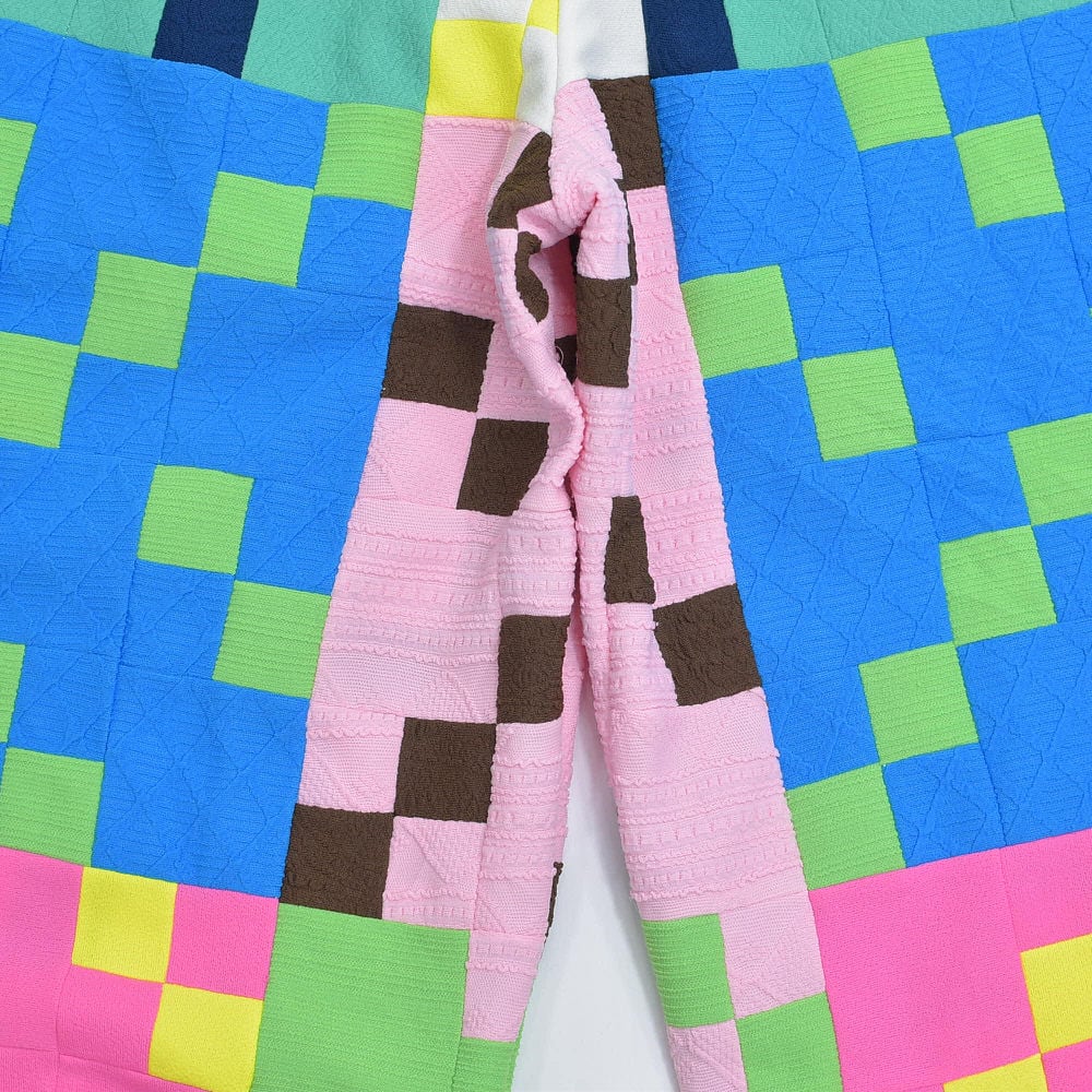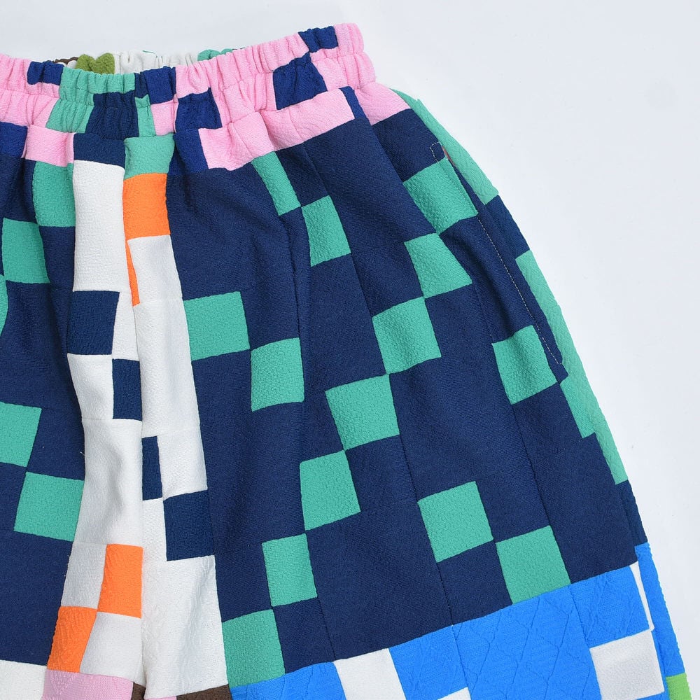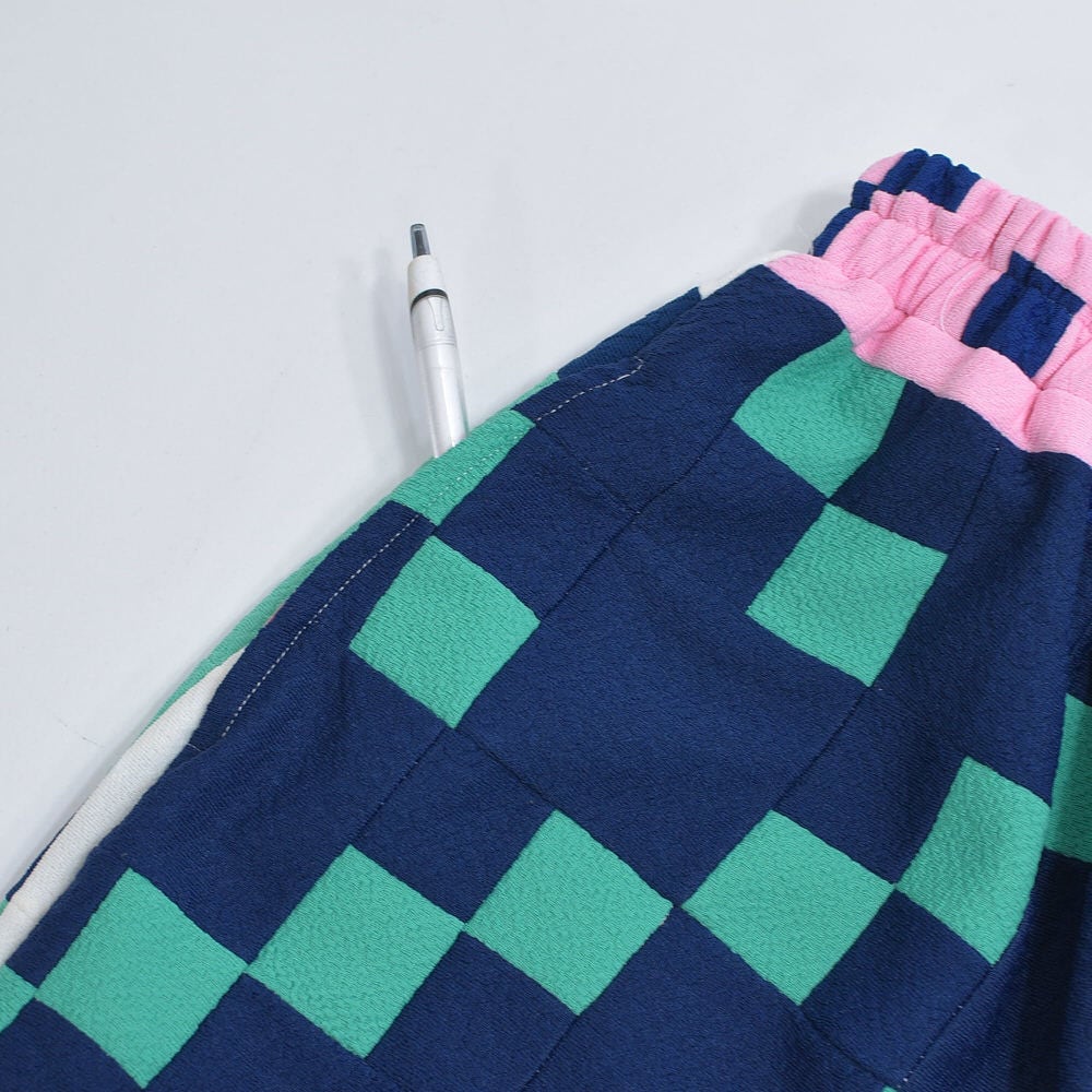 Remake リメイク ハンドメイド チェッカーパターン パッチワーク キルトトップ デザイン バルーンシルエット イージーパンツ 再構築 ツギハギ 裏地付き ユニセックスサイズ W66~106cm