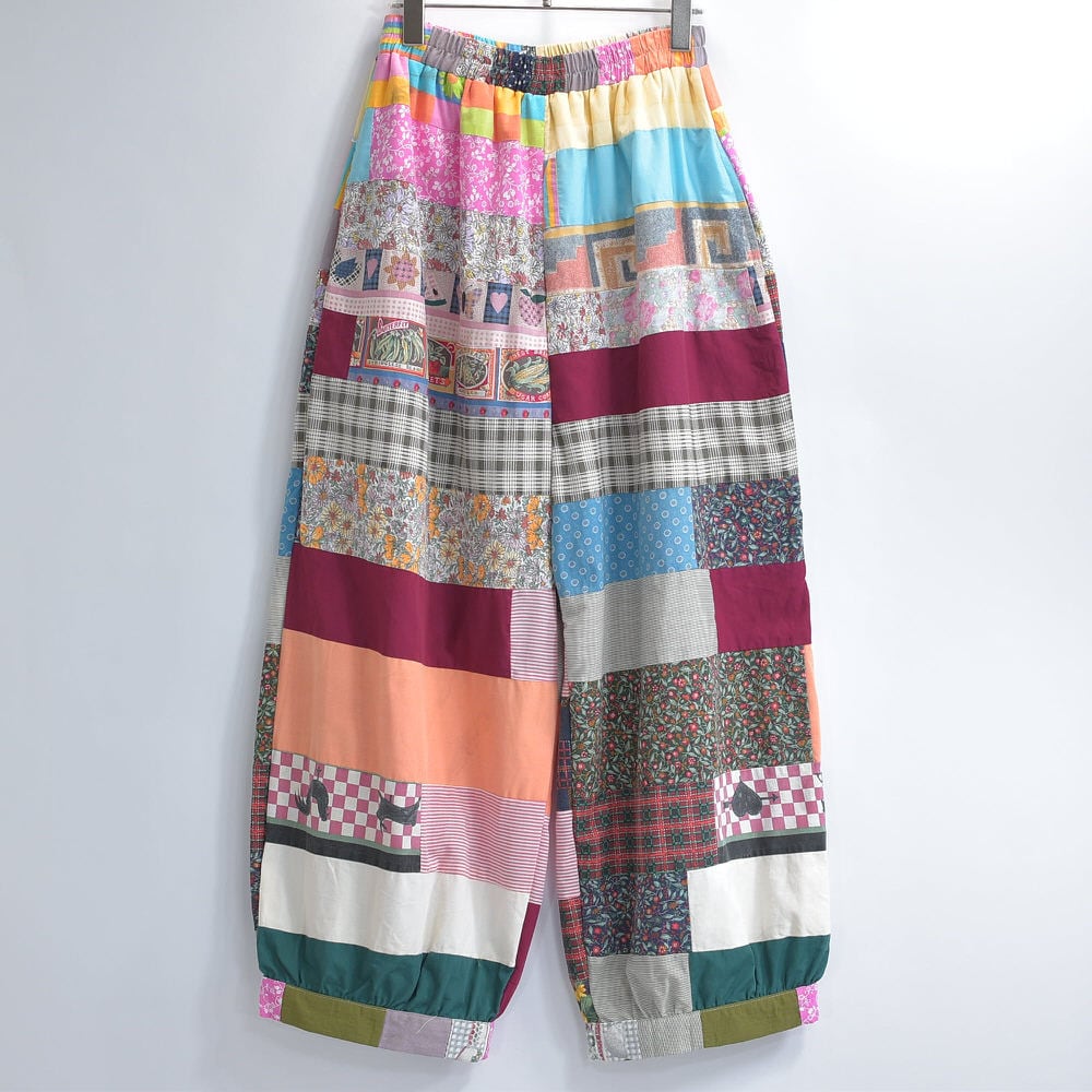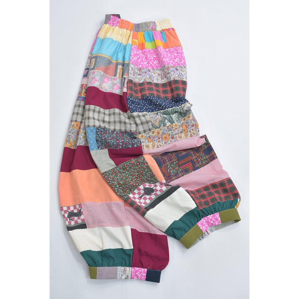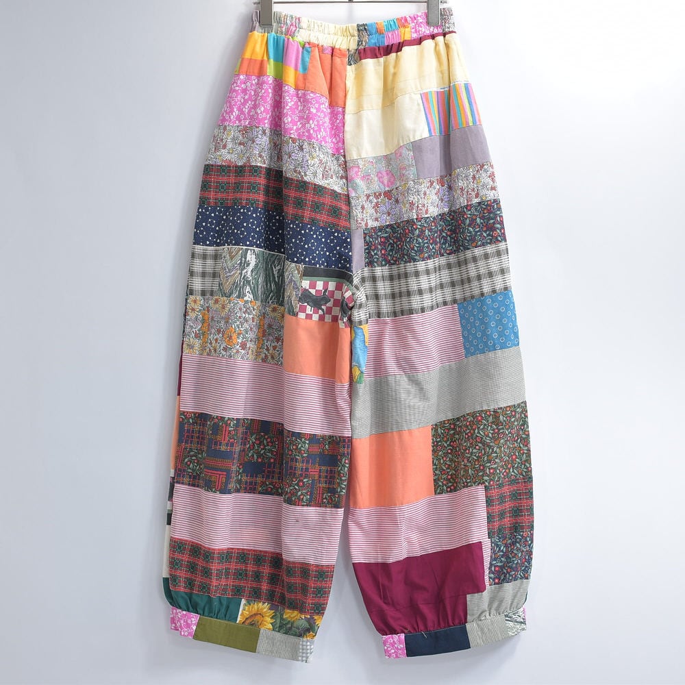 Remake リメイク ハンドメイド テキスタイル パッチワーク キルトトップ デザイン バルーンシルエット イージーパンツ 再構築 ツギハギ 裏地付き ユニセックスサイズ w65〜104cm