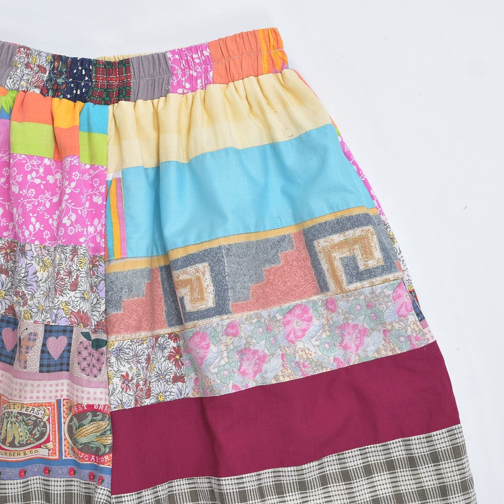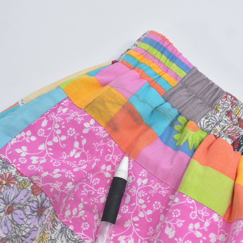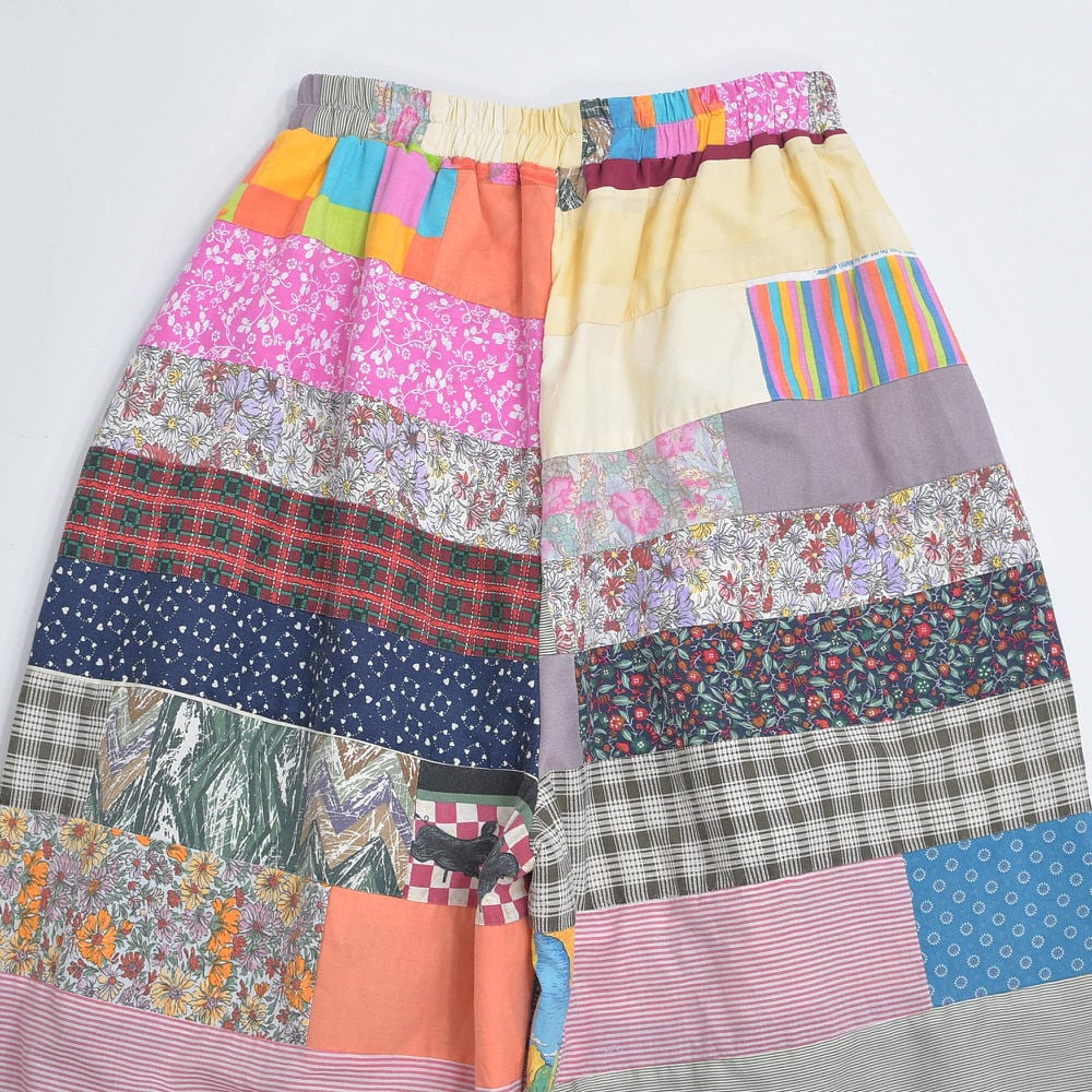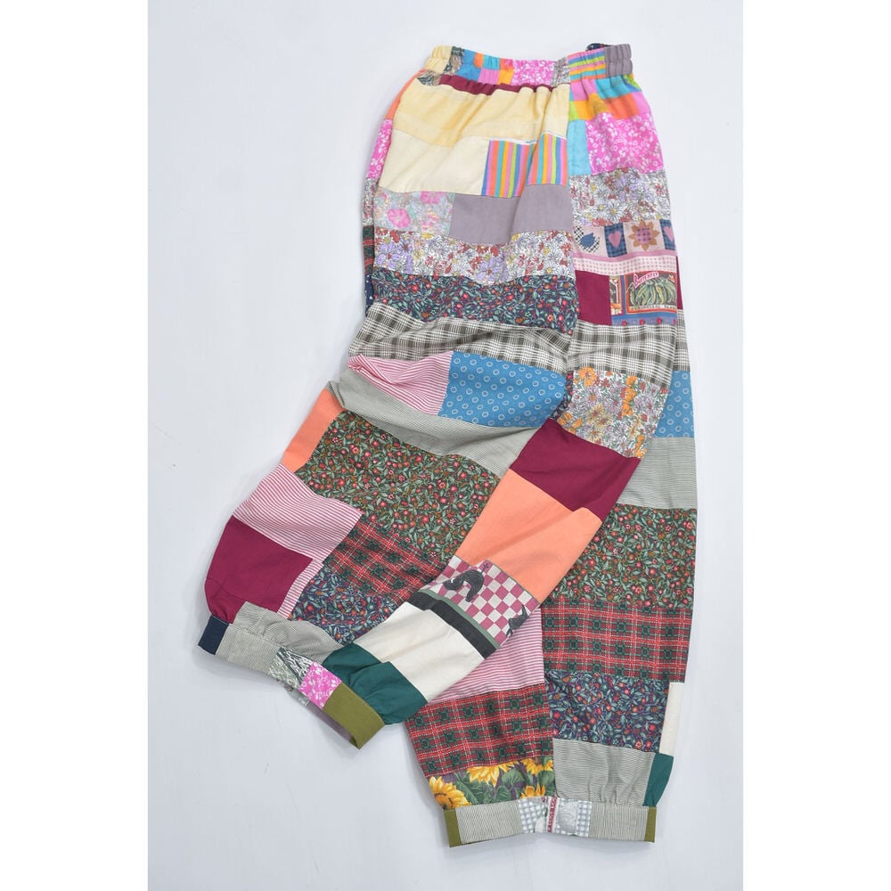 Remake リメイク ハンドメイド テキスタイル パッチワーク キルトトップ デザイン バルーンシルエット イージーパンツ 再構築 ツギハギ 裏地付き ユニセックスサイズ w65〜104cm