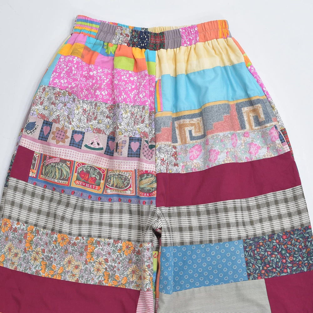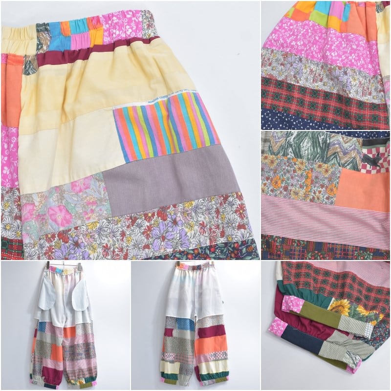 Remake リメイク ハンドメイド テキスタイル パッチワーク キルトトップ デザイン バルーンシルエット イージーパンツ 再構築 ツギハギ 裏地付き ユニセックスサイズ w65~104cm