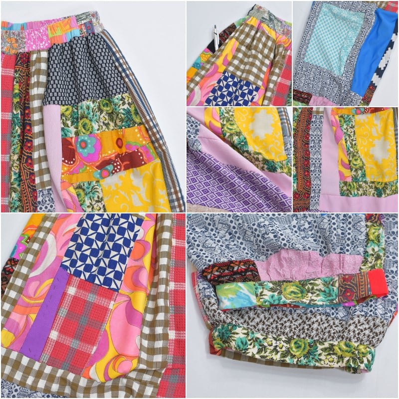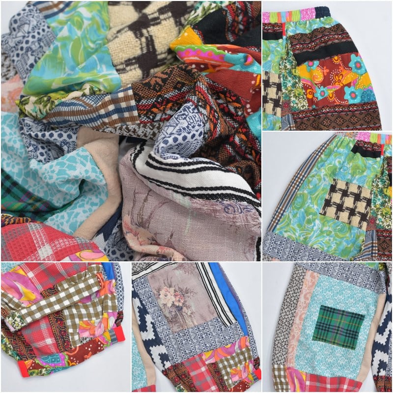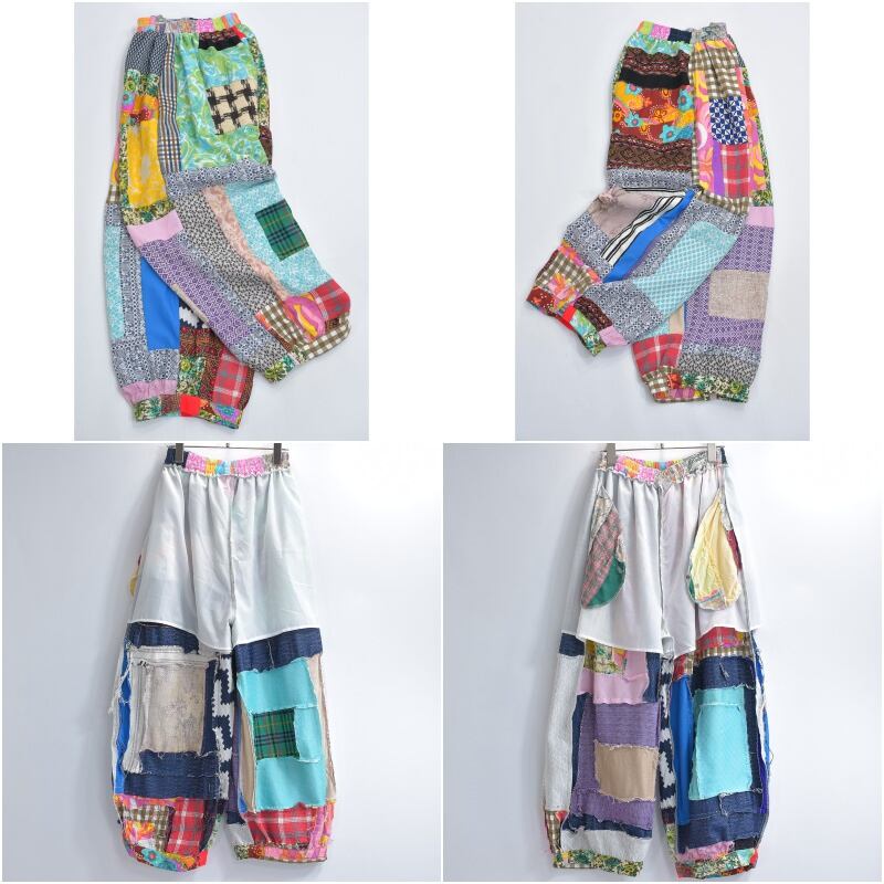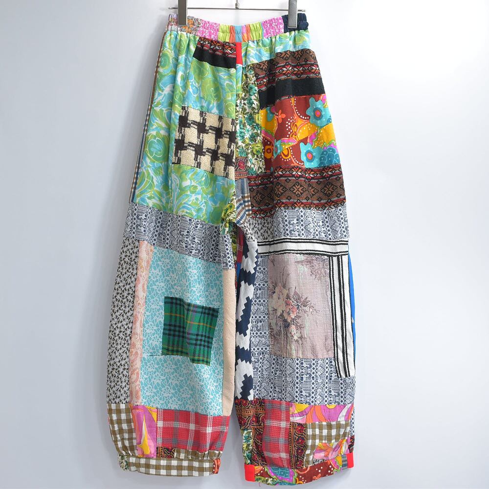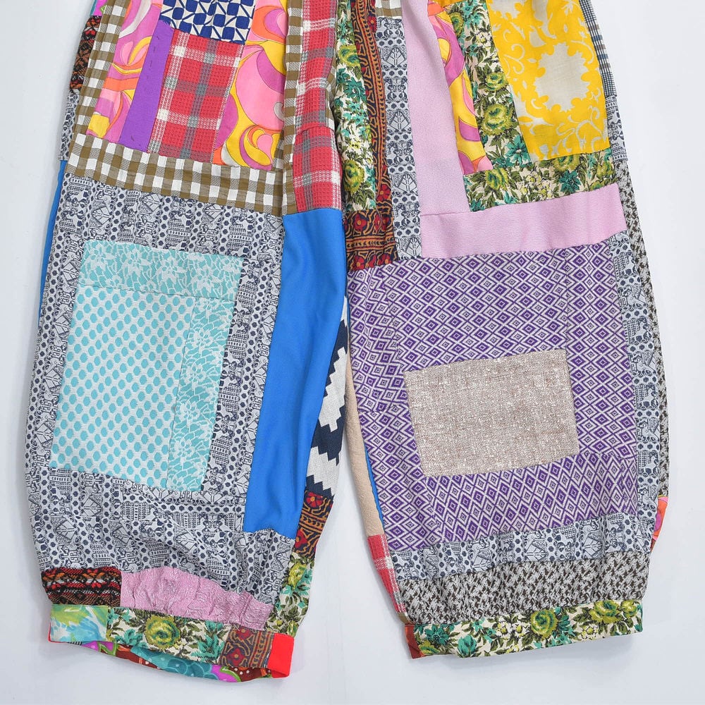 Remake リメイク ハンドメイド テキスタイル パッチワーク キルトトップ デザイン バルーンシルエット イージーパンツ 再構築 ツギハギ 裏地付き ユニセックスサイズ W63~104cm