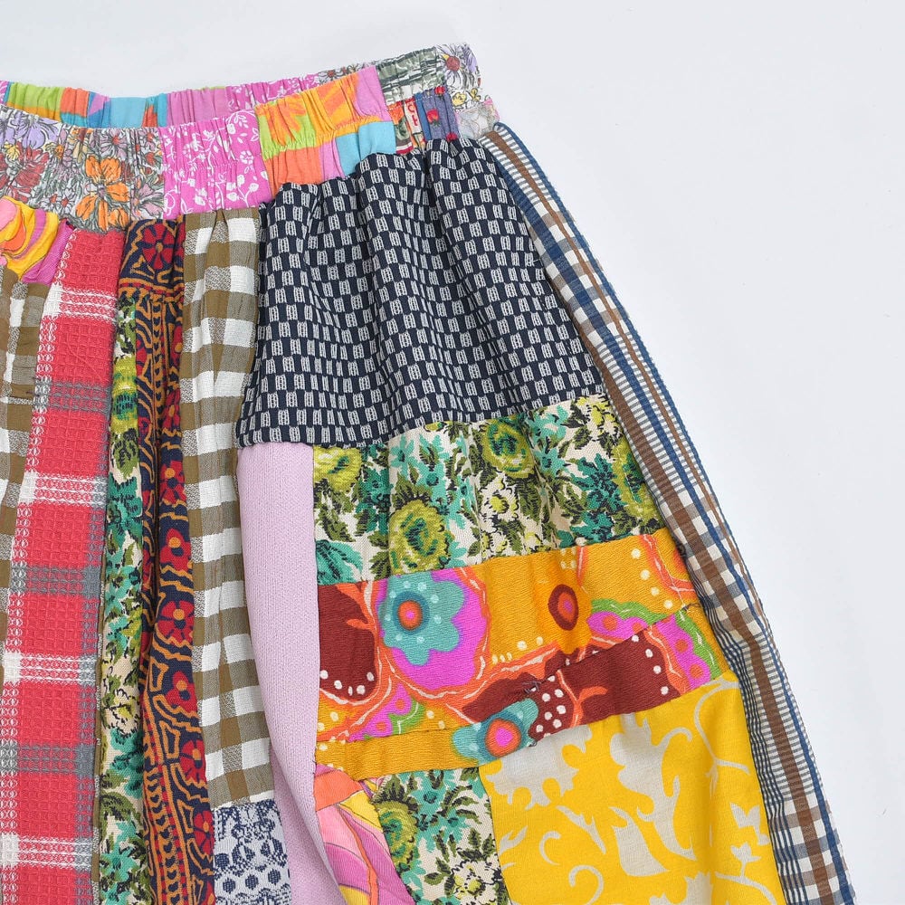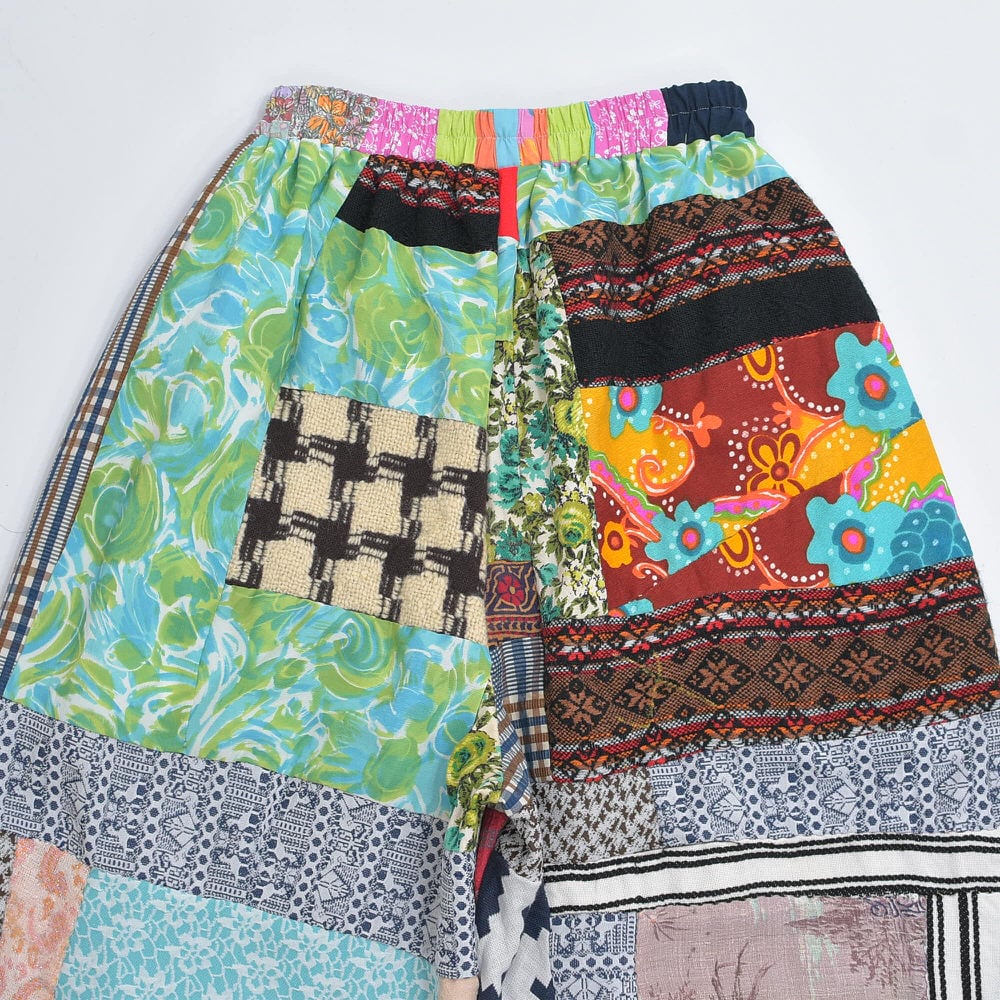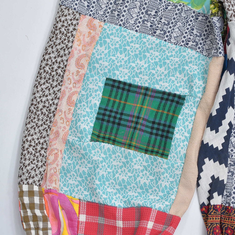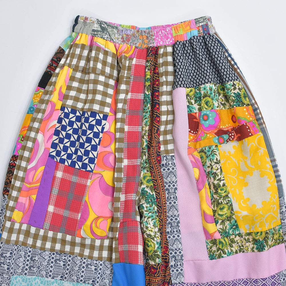 Remake リメイク ハンドメイド テキスタイル パッチワーク キルトトップ デザイン バルーンシルエット イージーパンツ 再構築 ツギハギ 裏地付き ユニセックスサイズ W63~104cm