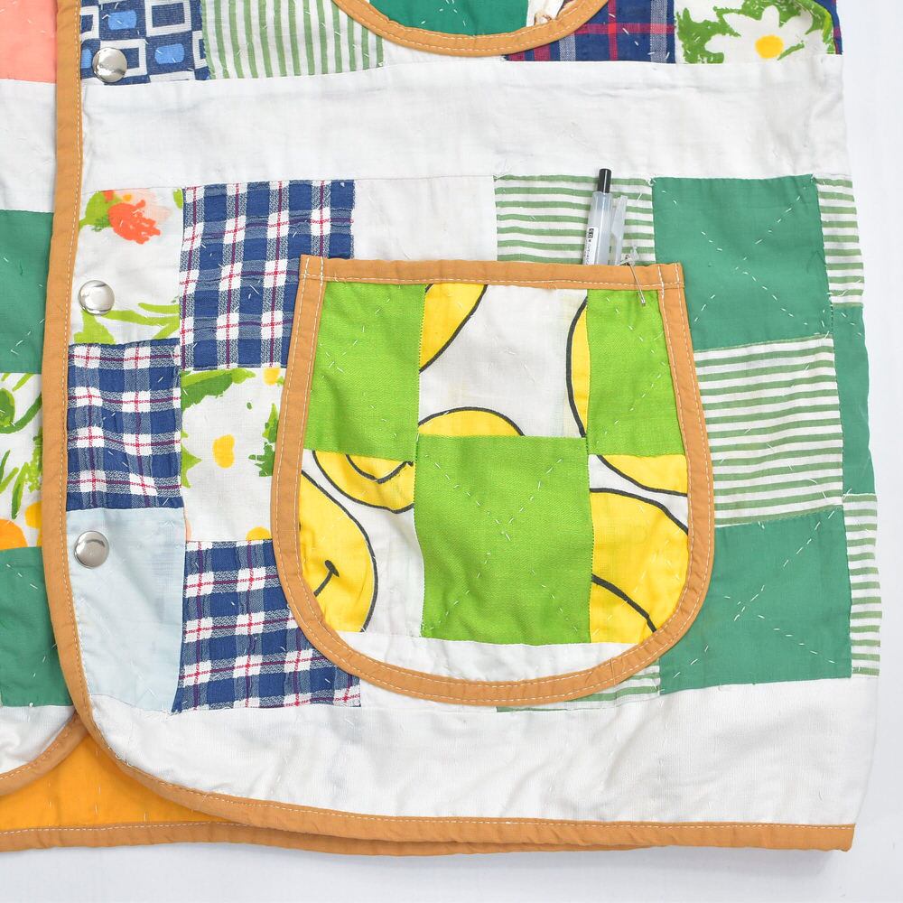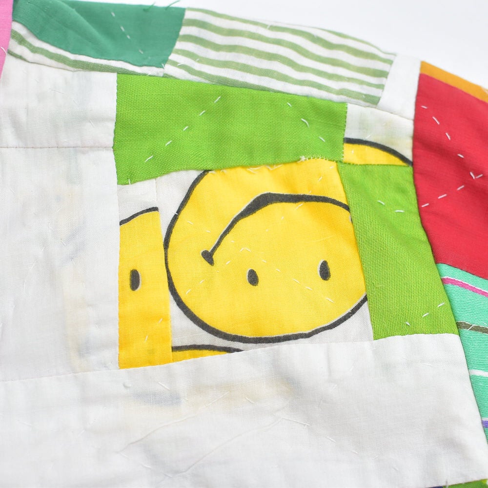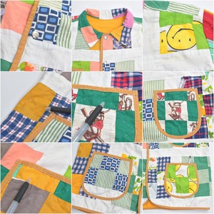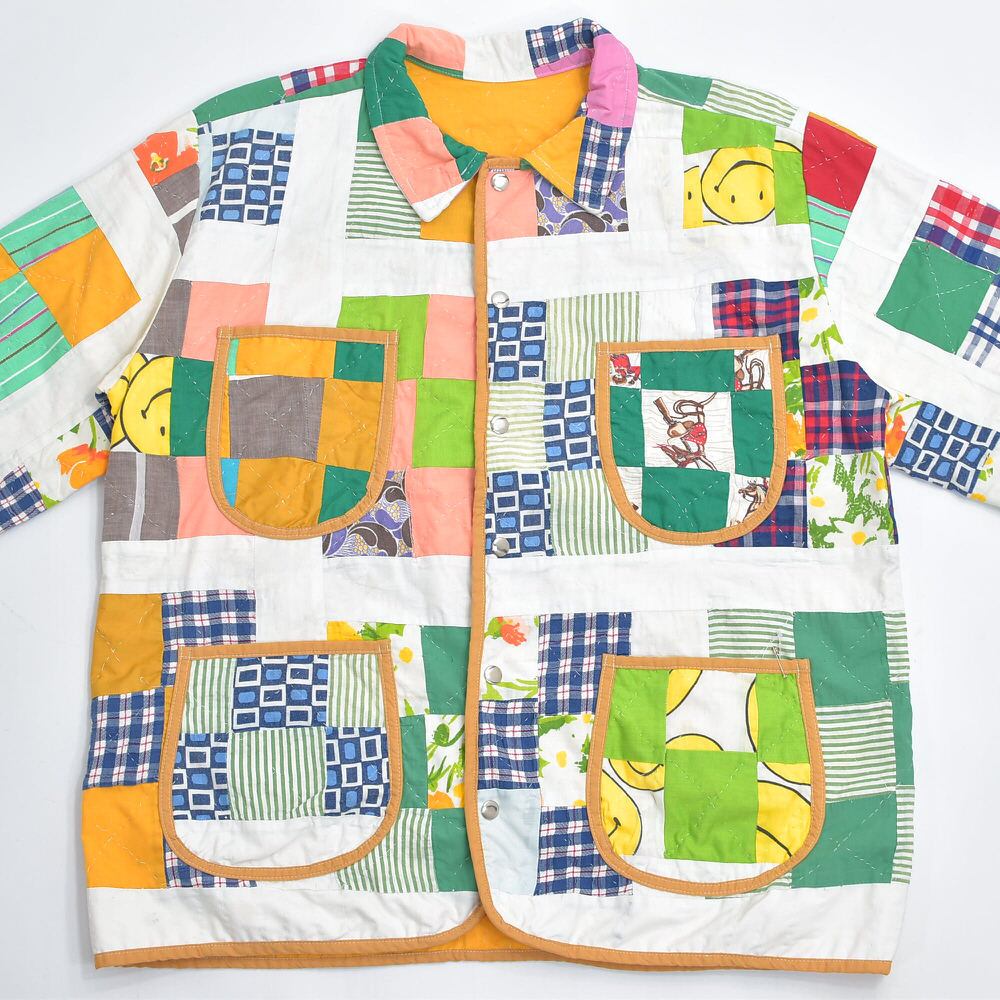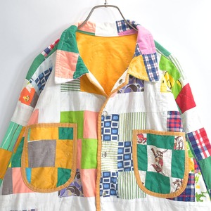 Remake リメイク ハンドメイド デザイン パッチワーク ダブルフェイス カバーオールジャケット キルトトップ アウター 再構築 ツギハギ スマイル メンズL相当