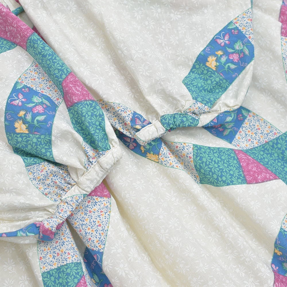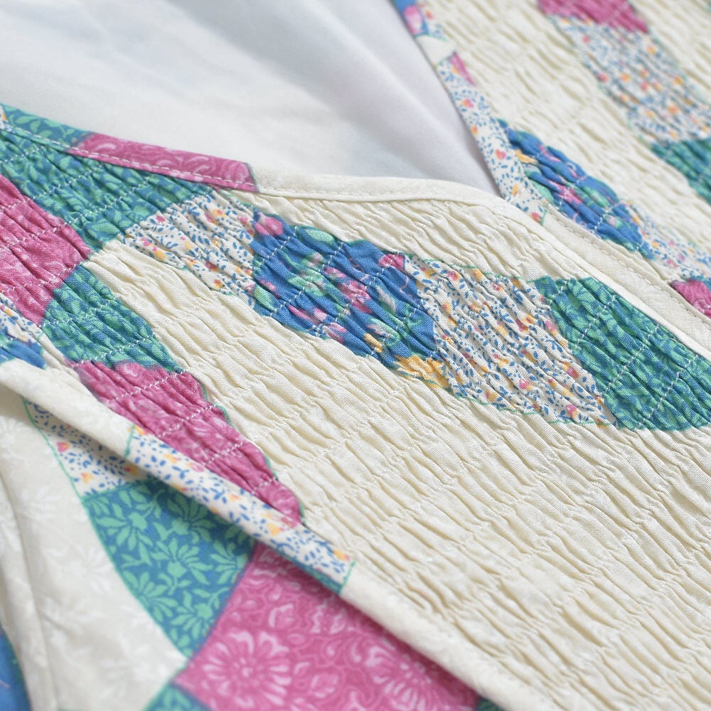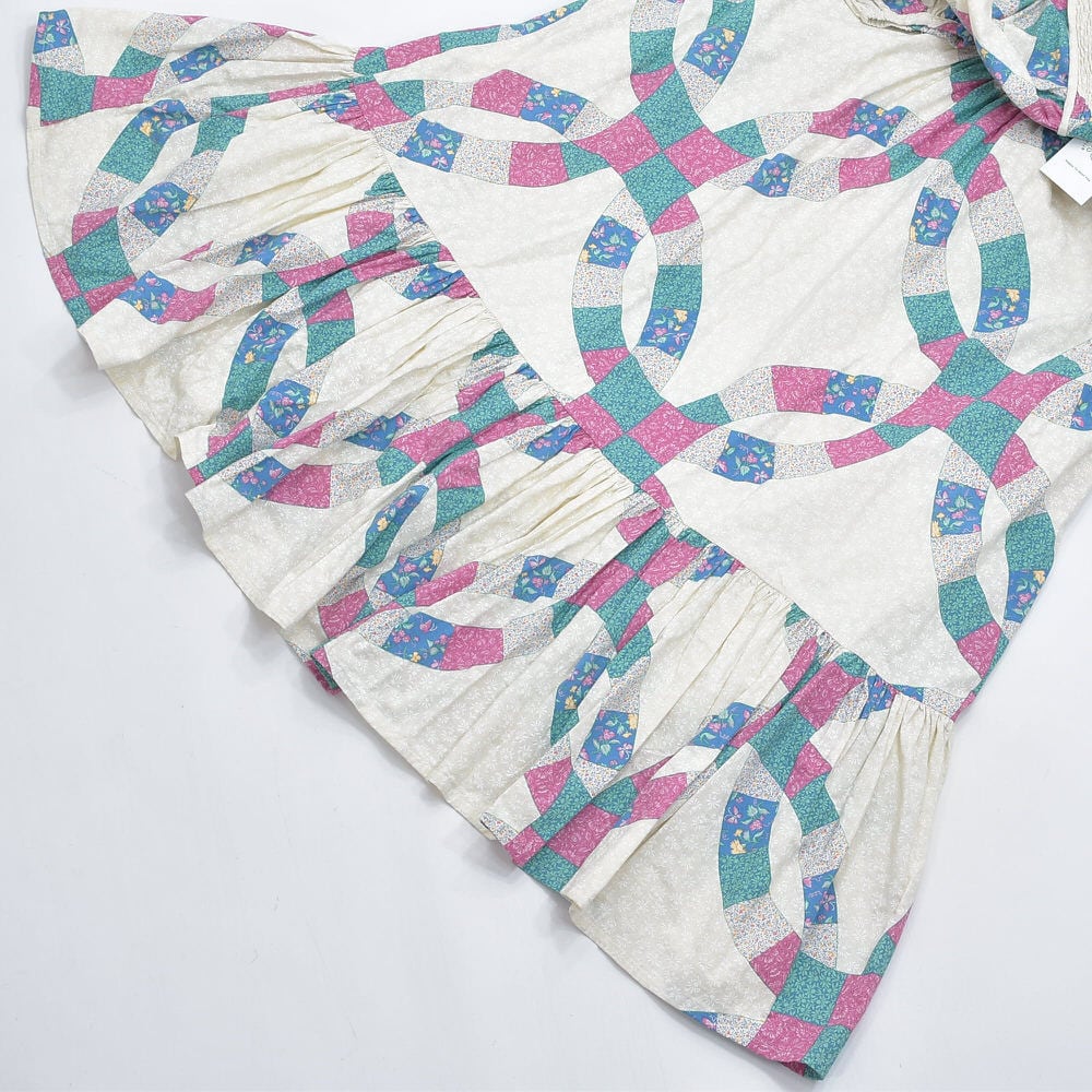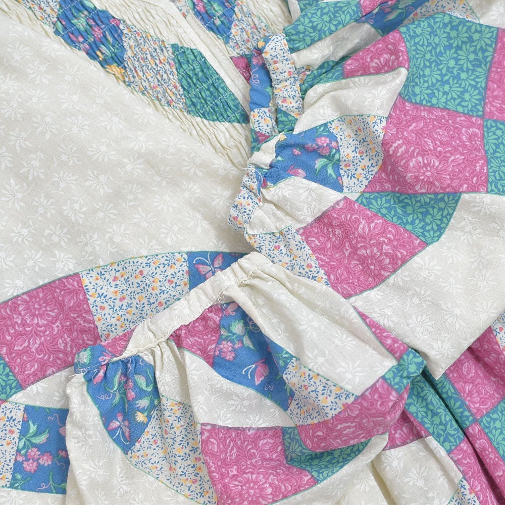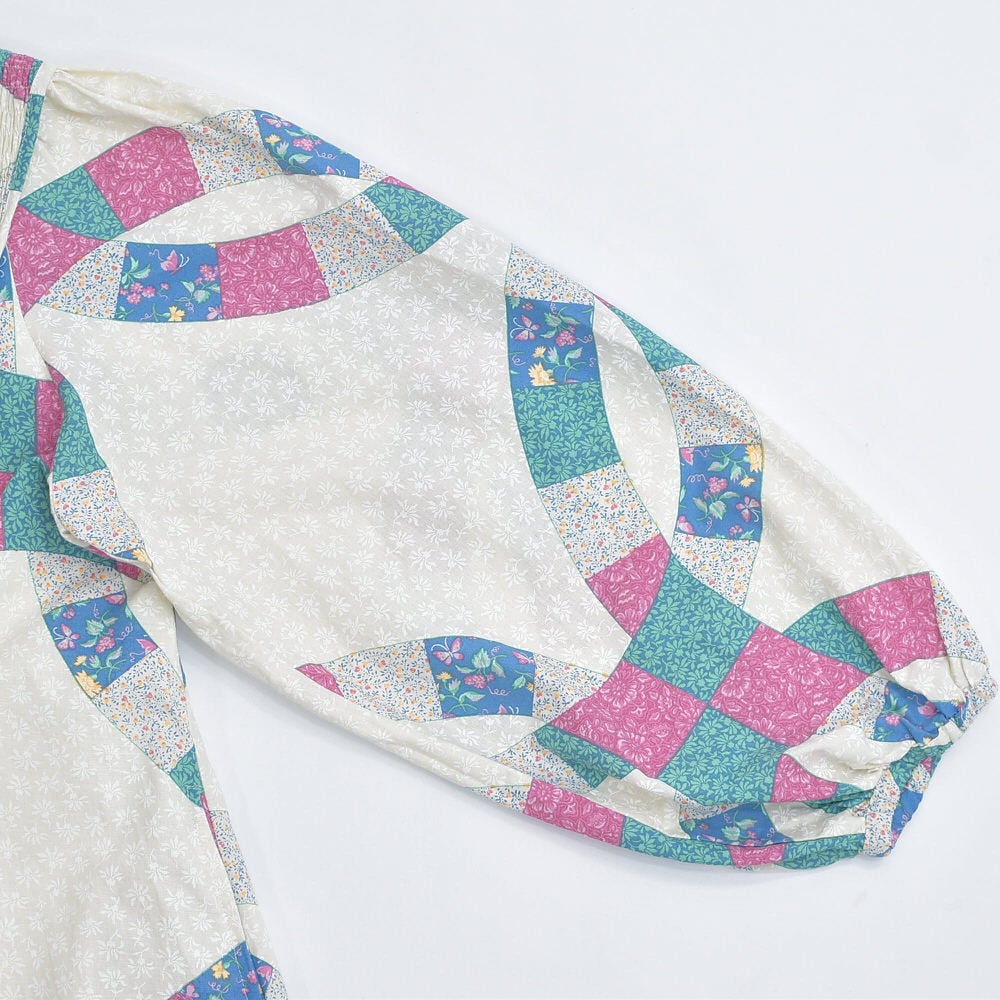 Remake リメイク 再構築 パッチワークキルト風 プリントデザイン ロングワンピース ダブルウエディング 裏地付き レディースM〜相当
