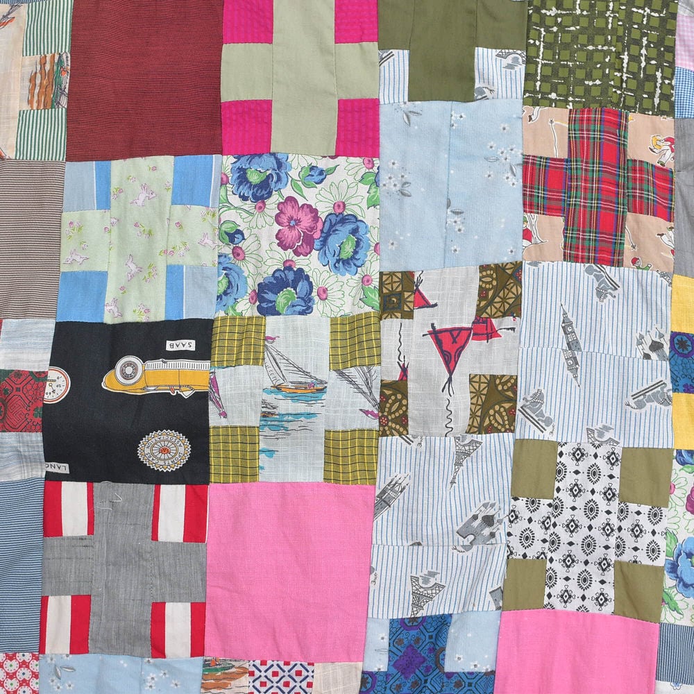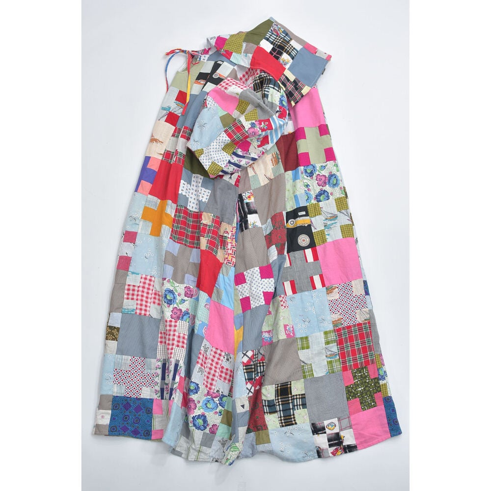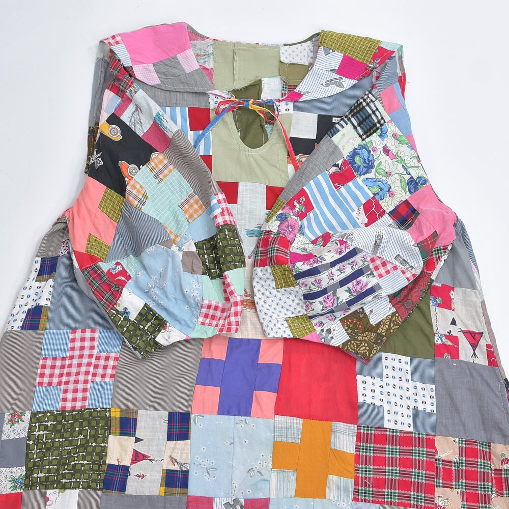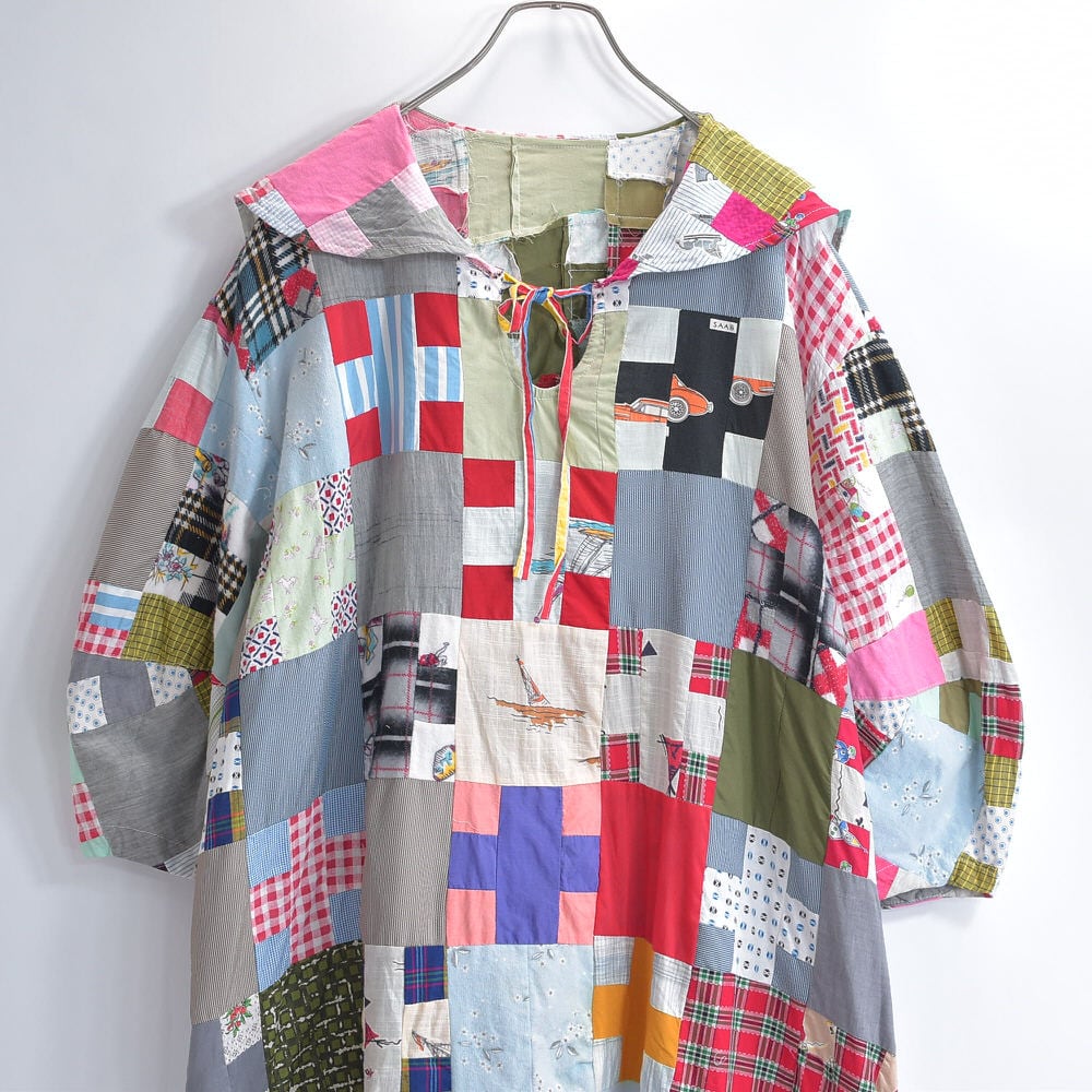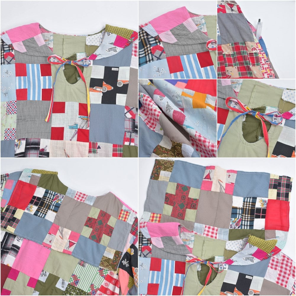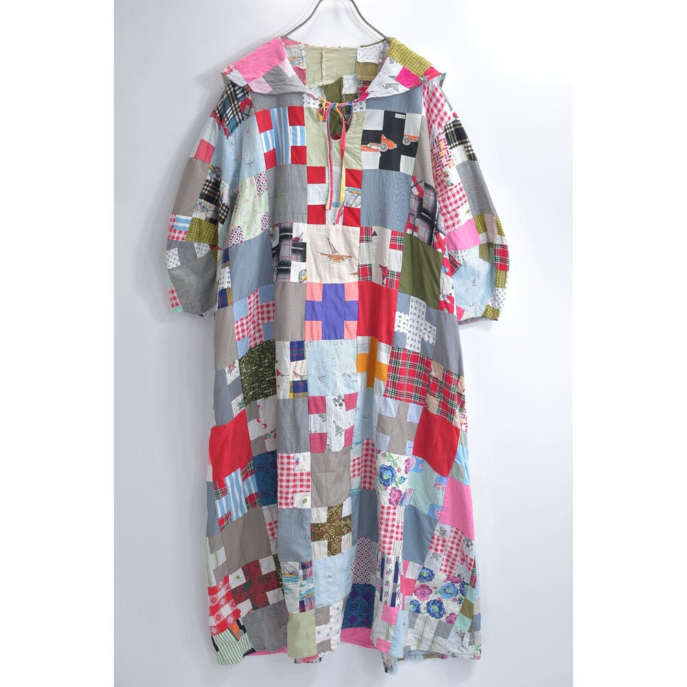 Remake リメイク 再構築 パッチワークキルトトップ デザイン セーラーカラー ロングワンピース Aライン レディースL〜XL相当
