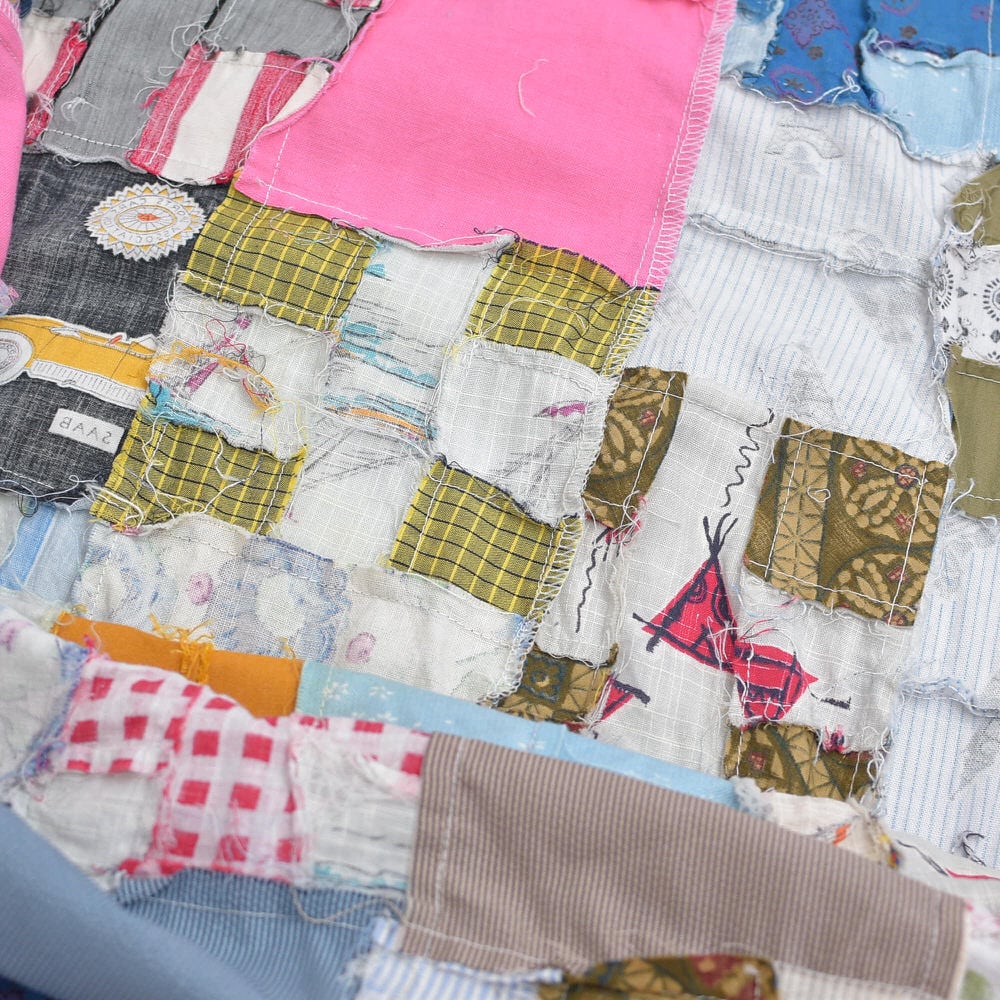 ※パッチワークの生地の性質上、繋ぎ目の仕末はロックされていないので、引っ張りのテンションの強度はあまり強くなく繊細です