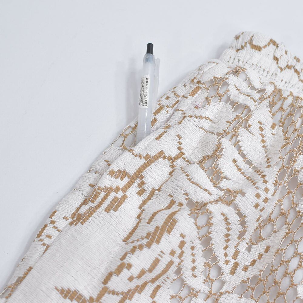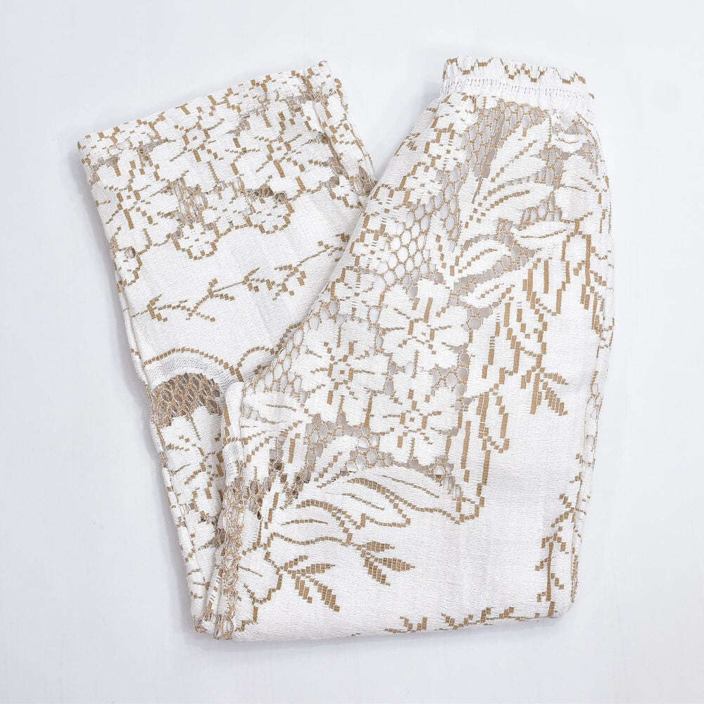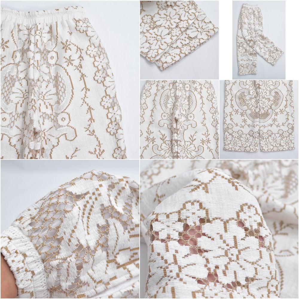 Remakeリメイク フラワーデザイン ラッセルレース ルーズシルエット イージーパンツ フローラル 花柄 パッチワーク オフホワイト 裏地付き W60~95cm