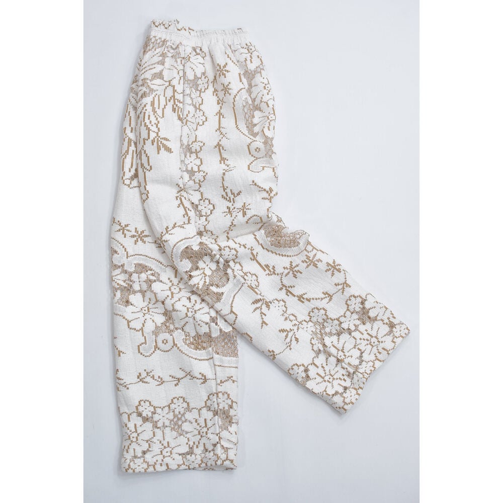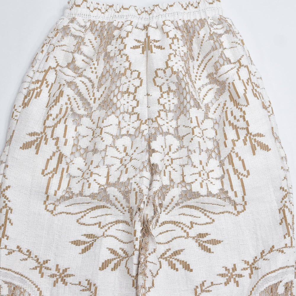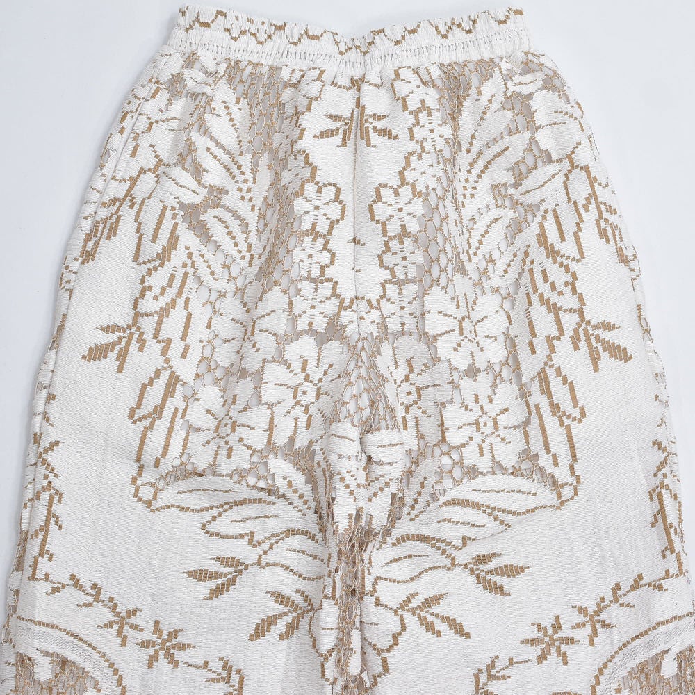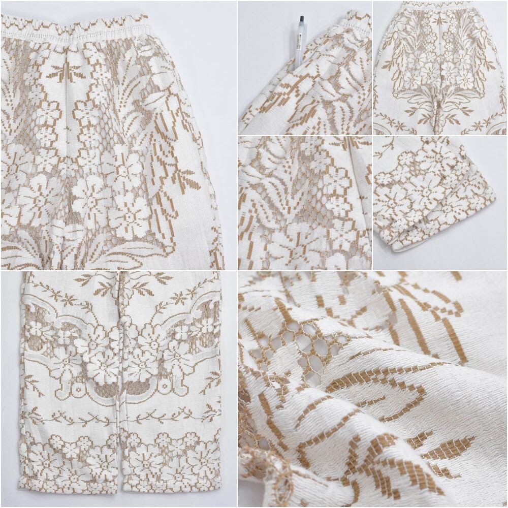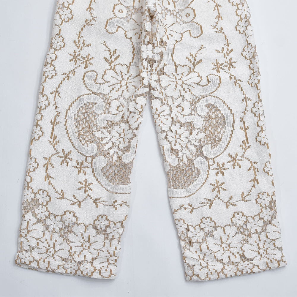 Remakeリメイク フラワーデザイン ラッセルレース ルーズシルエット イージーパンツ フローラル 花柄 パッチワーク オフホワイト 裏地付き W60〜95cm