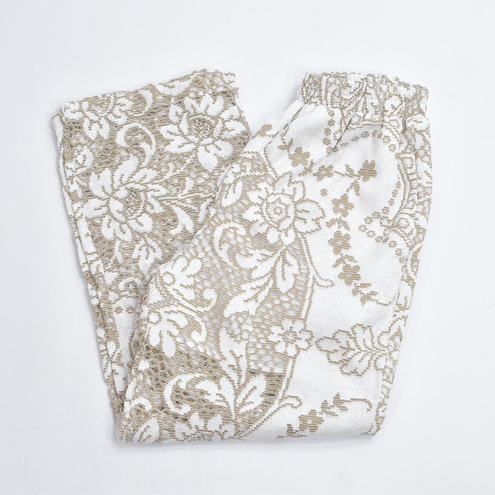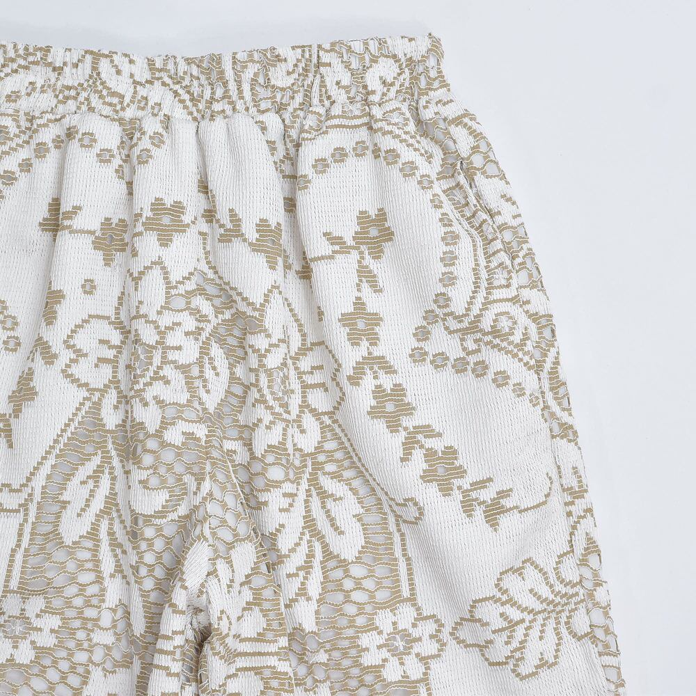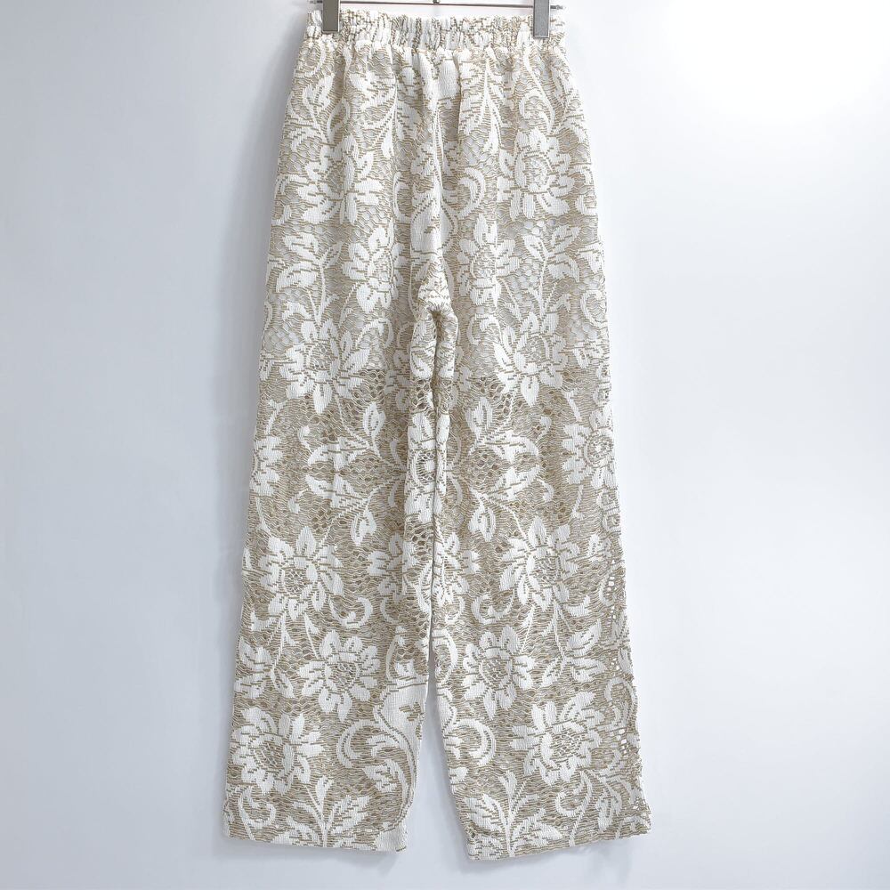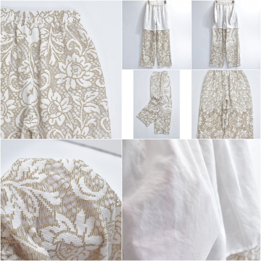 Remakeリメイク フラワーデザイン ラッセルレース ルーズシルエット イージーパンツ フローラル 花柄 パッチワーク オフホワイト 裏地付き W61~97cm