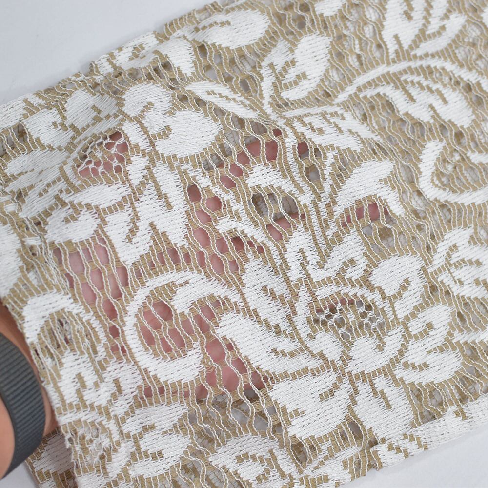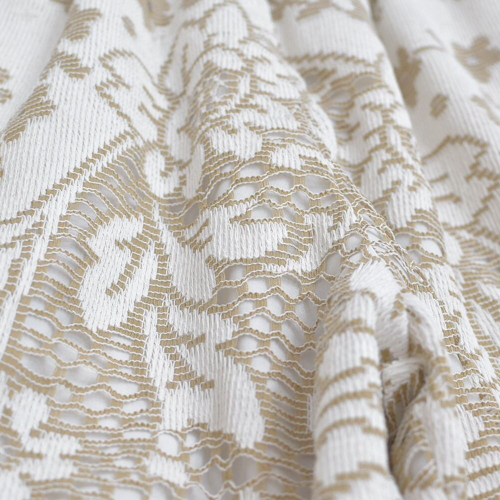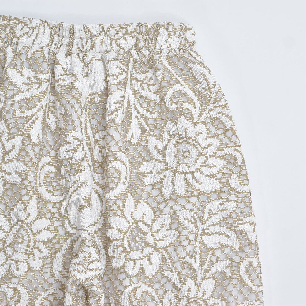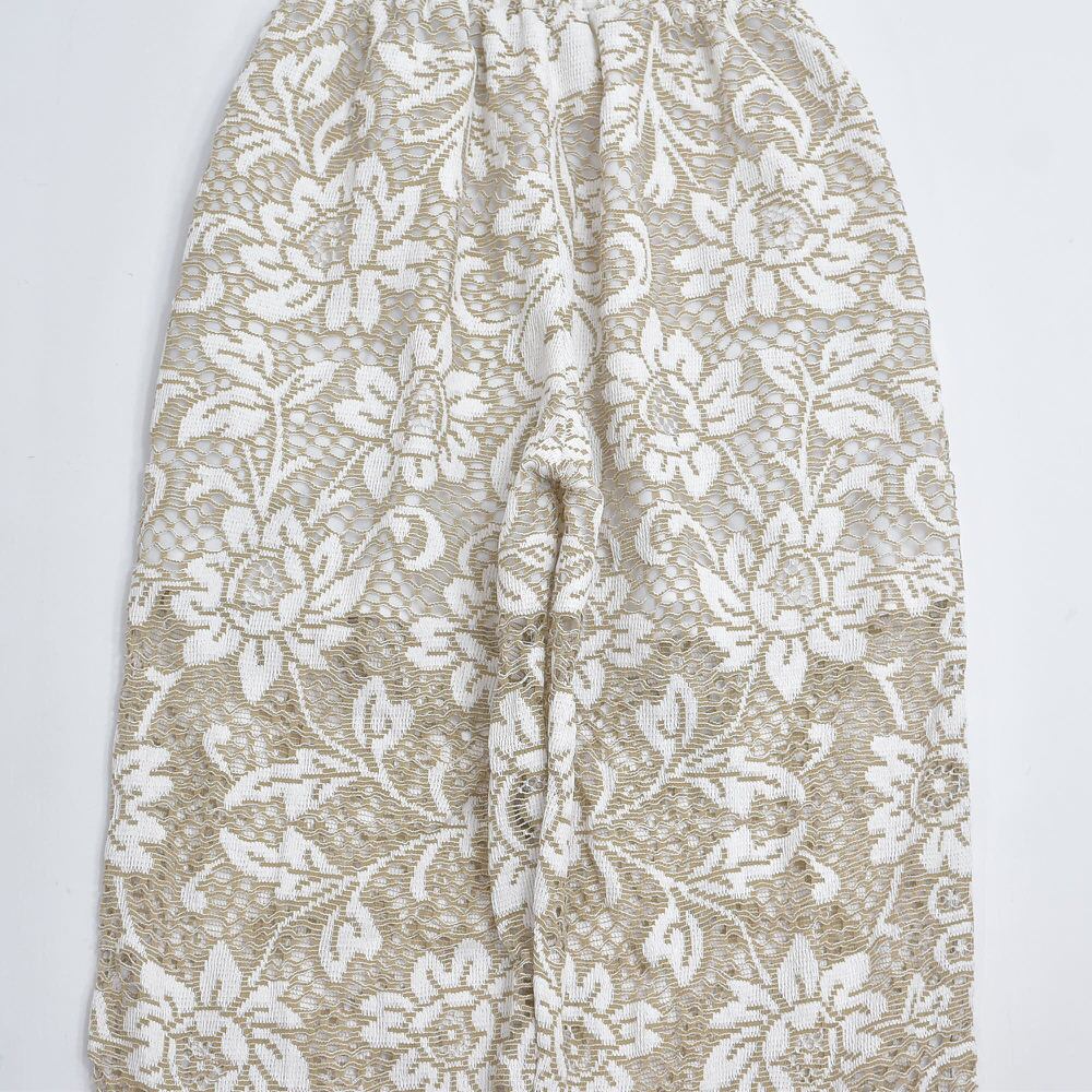 Remakeリメイク フラワーデザイン ラッセルレース ルーズシルエット イージーパンツ フローラル 花柄 パッチワーク オフホワイト 裏地付き W61~97cm