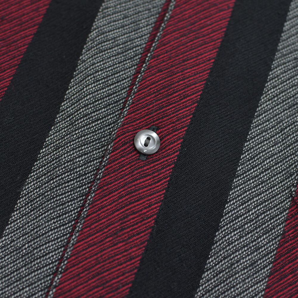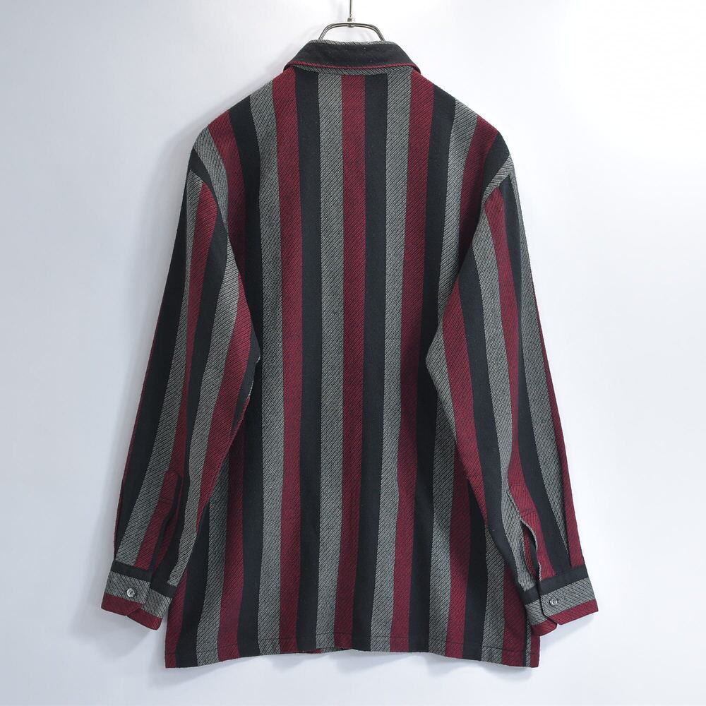 80s MORI TOSHI クラシックスタイル マルチストライプデザイン ウールブレンド シャツ 長袖 ボルドー ブラック ジャパンヴィンテージ ビンテージ 古着 メンズ Mサイズ