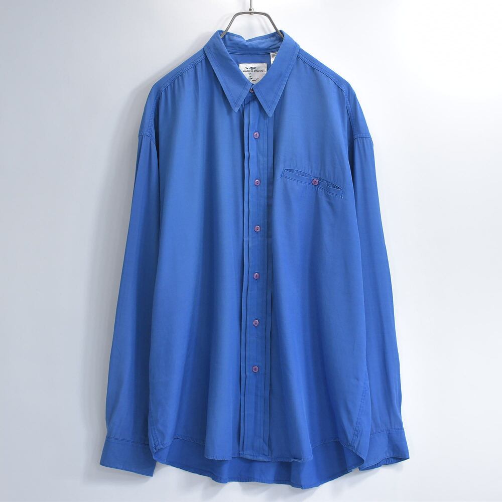 90s index men インデックスメン グッドフェード プリーツデザイン ルーズシルエットシャツ 長袖 くすみブルー ヴィンテージ ビンテージ USA アメリカ古着 メンズXL相当