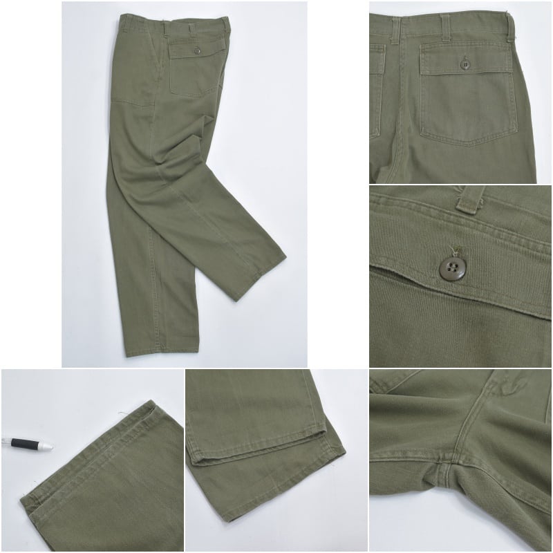 70~80s 民間品 U.S.Army アメリカ軍 コットンサテン ベイカーパンツ ミリタリー ユーティリティー ファティーグパンツ オリーブ ヴィンテージ ビンテージ USA アメリカ古着 メンズW34インチ相当