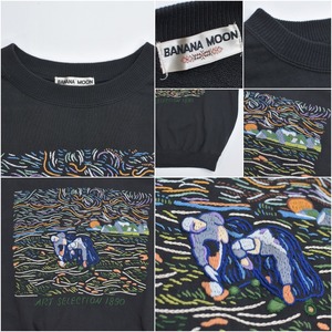 90s BANANA MOON バナナムーン ゴッホ 落穂拾い オマージュ アート刺繍 デザイン スウェット トレーナー ミレー 絵画 黒 ジャパンヴィンテージ ビンテージ 古着 メンズMサイズ