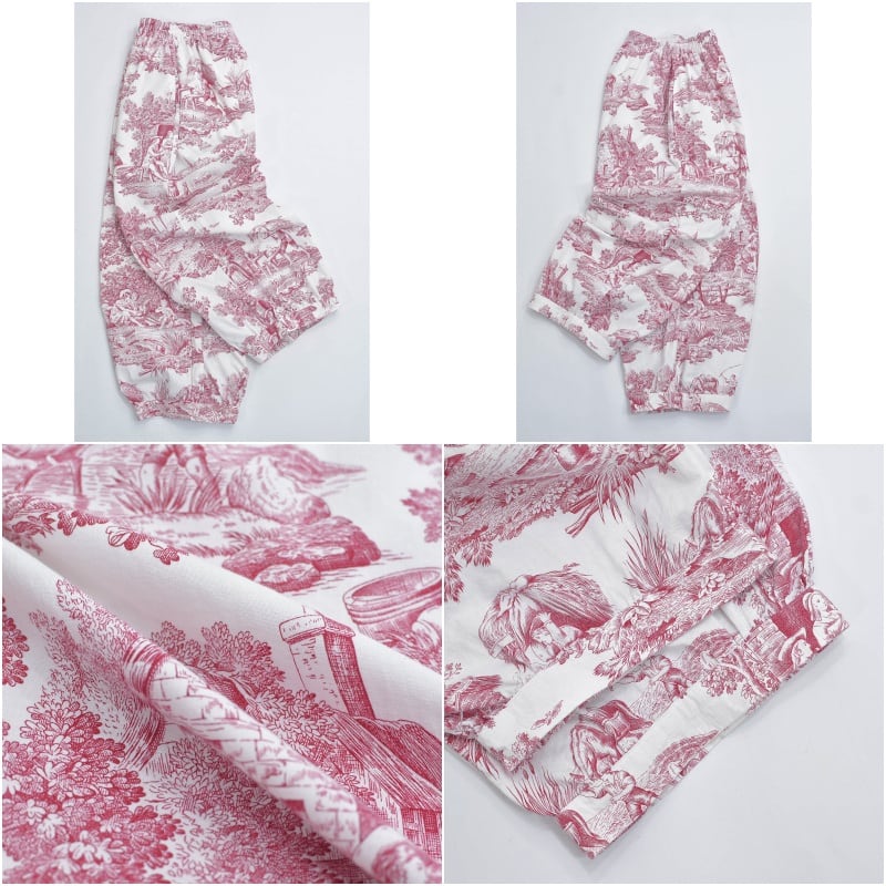 フランスの伝統柄、トワル・ド・ジュイのパターンクロスをボトムスに再構築したリメイクパンツ