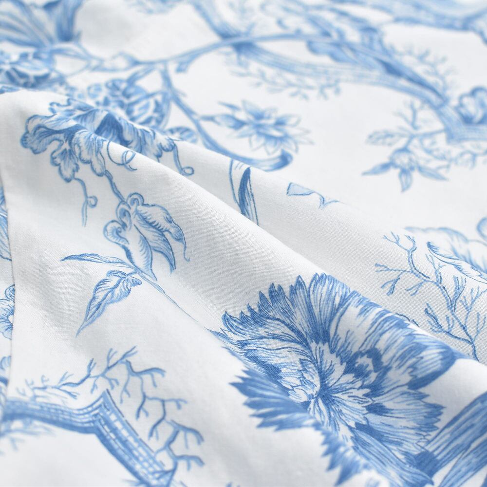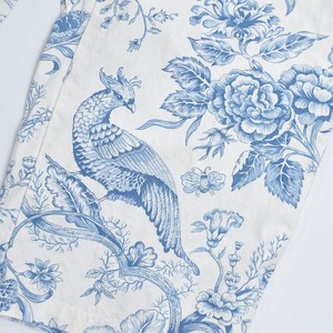 ホワイトをベースに淡く優しく色合いのブルーで描かれた花々と鳥