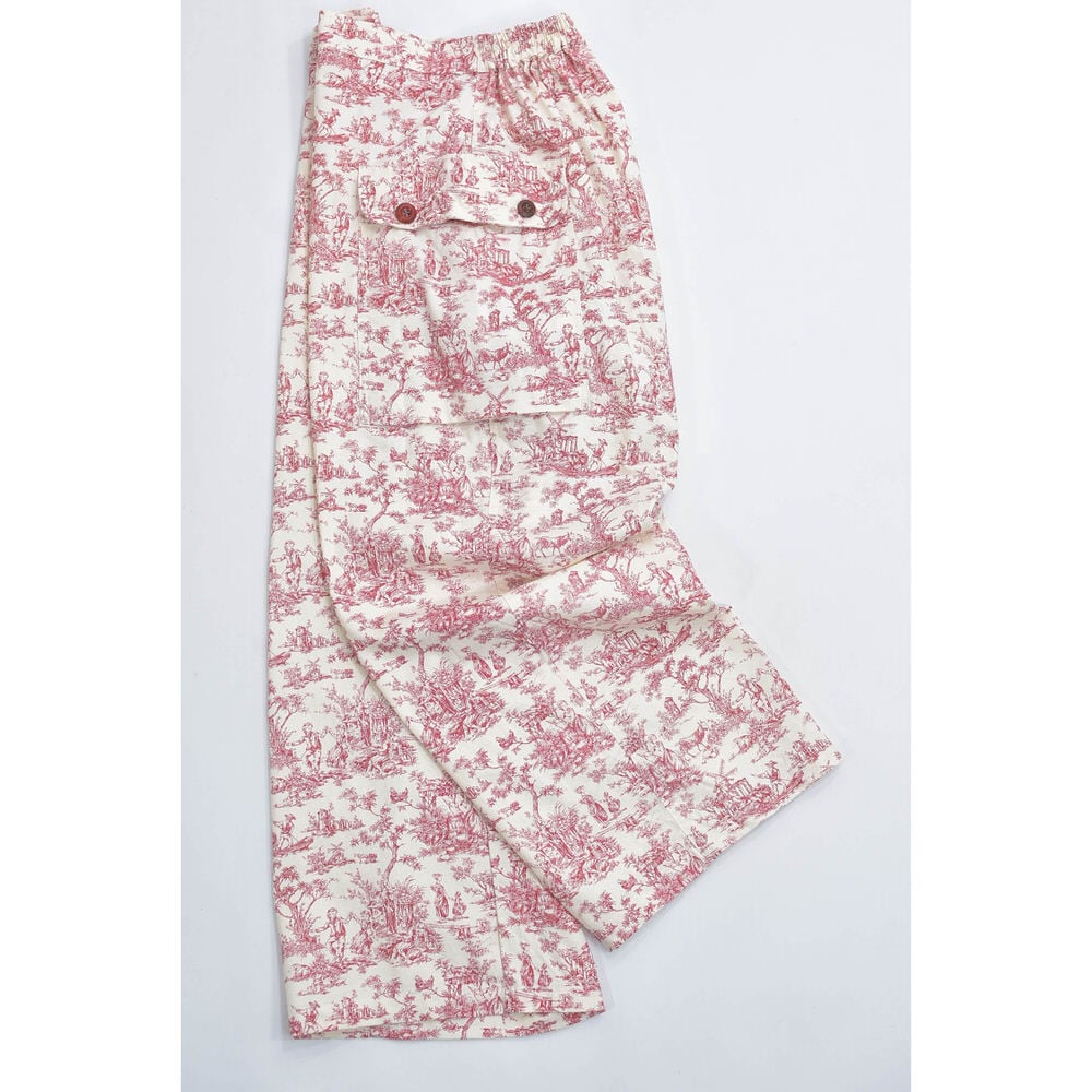 Remake ヴィンテージ アンティーク調 トワル・ド・ジュイ柄 ルーズシルエット カーゴパンツ テキスタイル ボタニカル 風景 再構築 リメイク 総柄 キナリ W69〜84cm