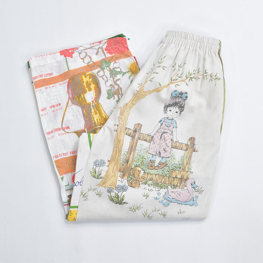 Remakeリメイク ヴィンテージ テキスタイル パッチワーク デザイン 再構築 ルーズシルエット イージーパンツ ツギハギ 古着 裏地付き W64~100cm