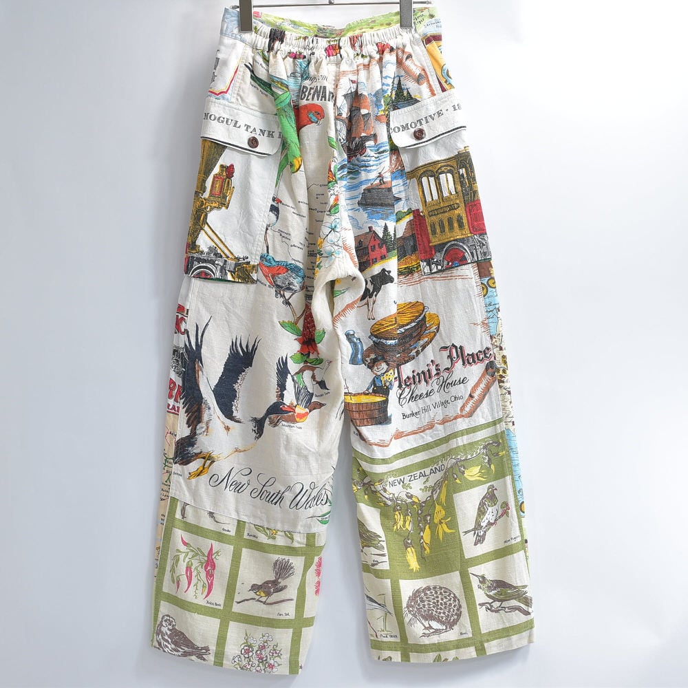 Remakeリメイク ヴィンテージ テキスタイル パッチワーク デザイン 再構築 ルーズシルエット カーゴパンツ ツギハギ 古着 裏地付き W68〜82cm
