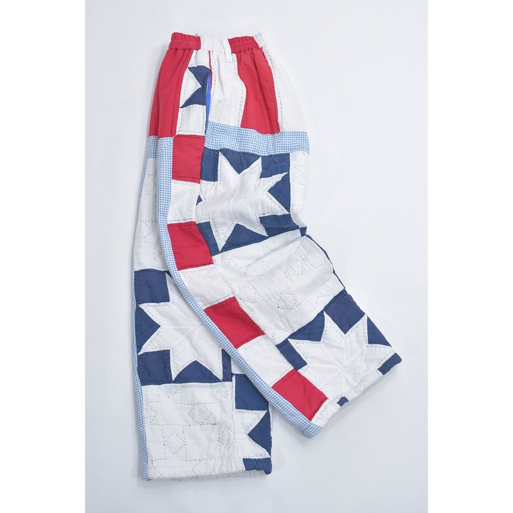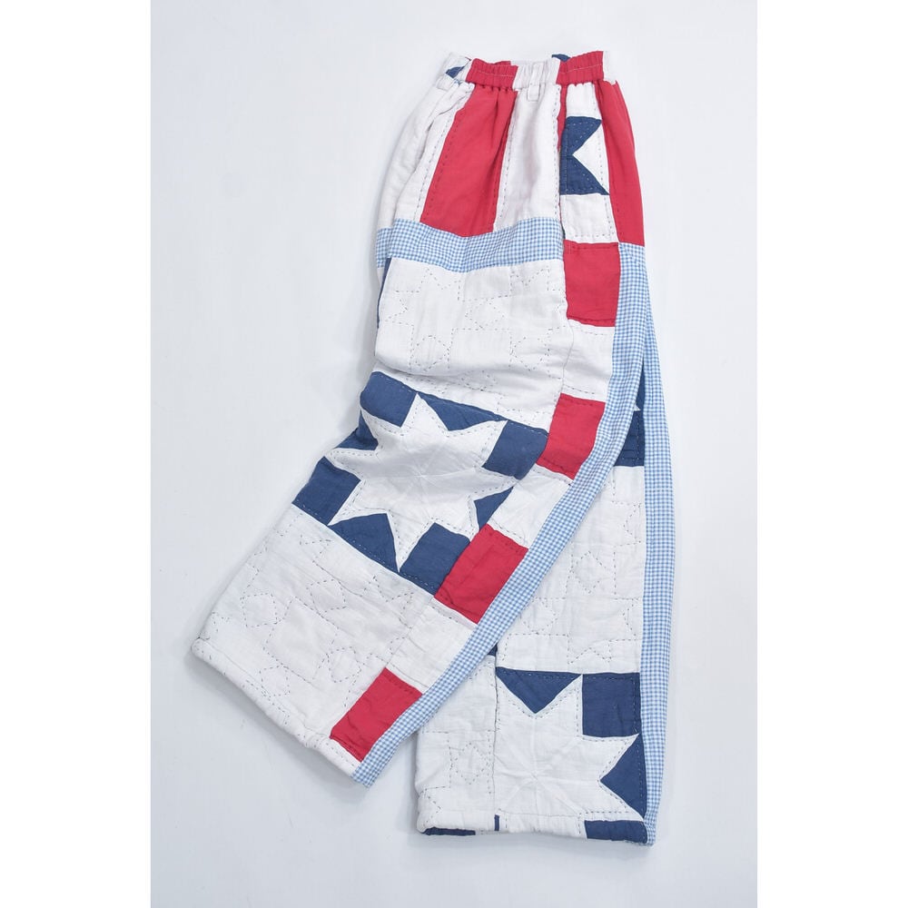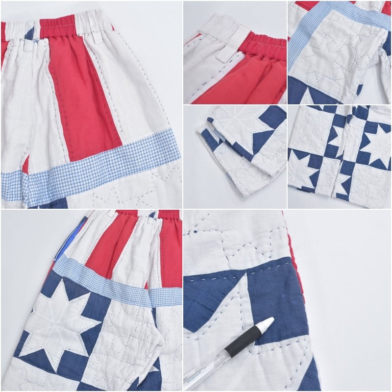 Remake リメイク ハンドメイド デザイン パッチワーク キルト スター&ストライプ デザイン ワイドシルエット イージーパンツ アメリカ 星条旗 再構築 ツギハギ W64~98cm
