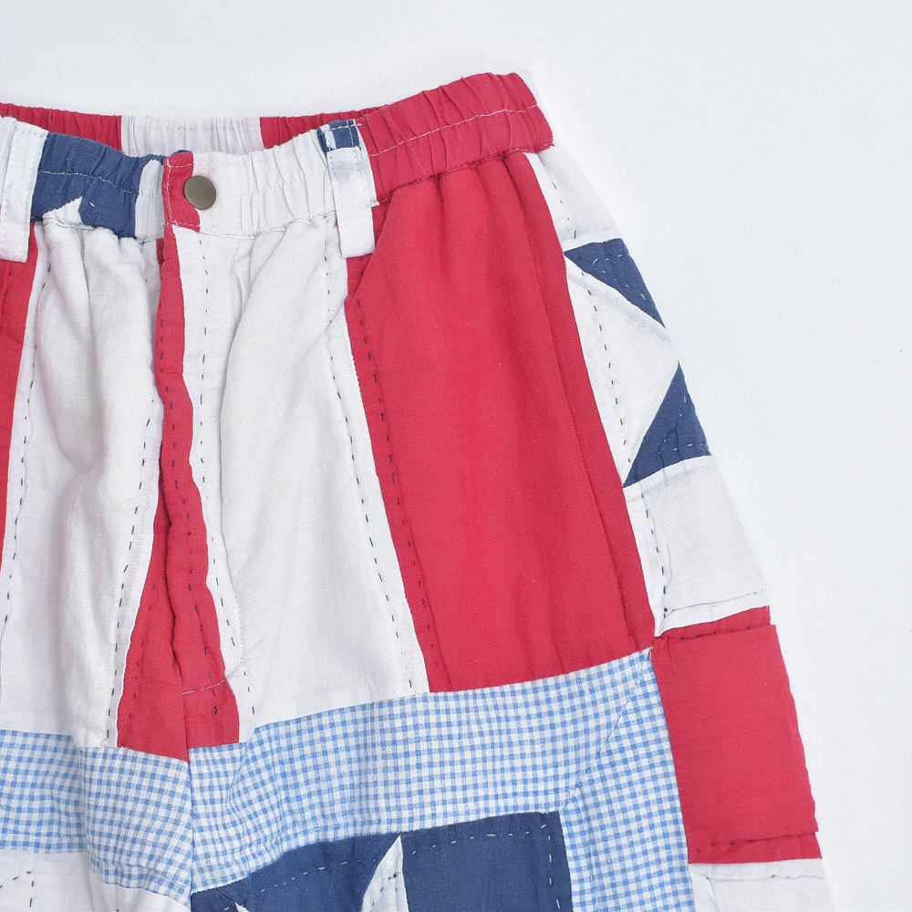 Remake リメイク ハンドメイド デザイン パッチワーク キルト スター&ストライプ デザイン ワイドシルエット イージーパンツ アメリカ 星条旗 再構築 ツギハギ W64〜98cm