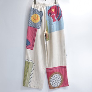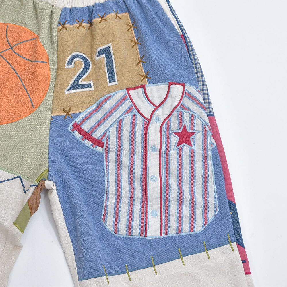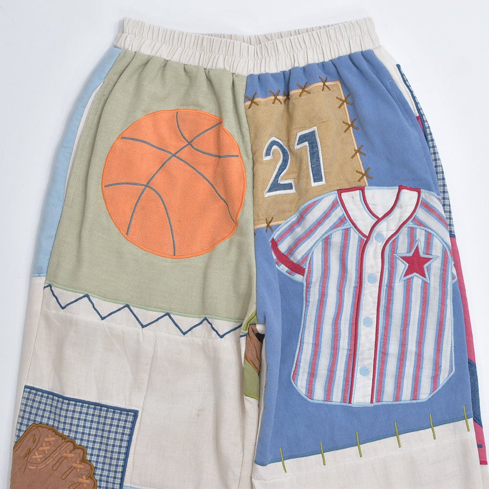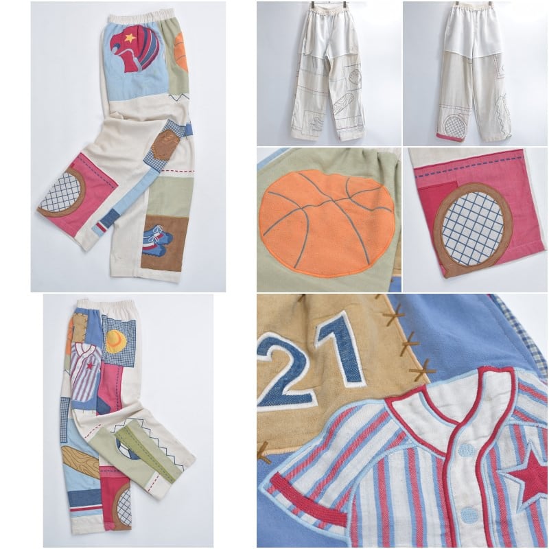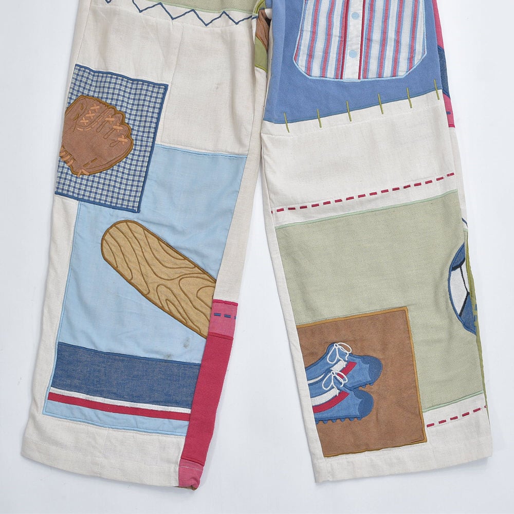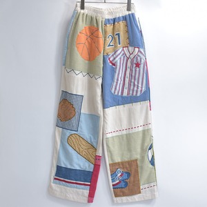 Remake リメイク ハンドメイド スポーツモチーフ パッチワークデザイン ルーズシルエット イージーパンツ 再構築 ツギハギ 裏地付き ユニセックスサイズ W65~98cm