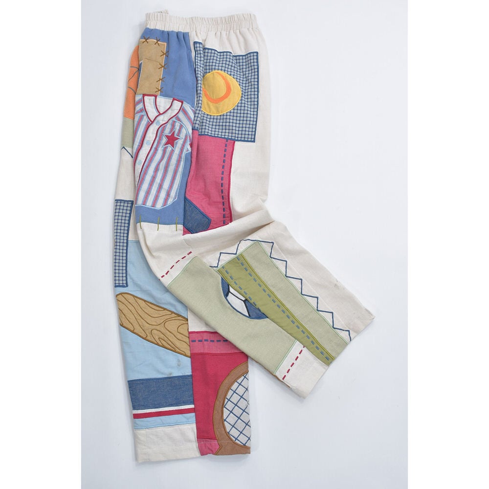 Remake リメイク ハンドメイド スポーツモチーフ パッチワークデザイン ルーズシルエット イージーパンツ 再構築 ツギハギ 裏地付き ユニセックスサイズ W65〜98cm
