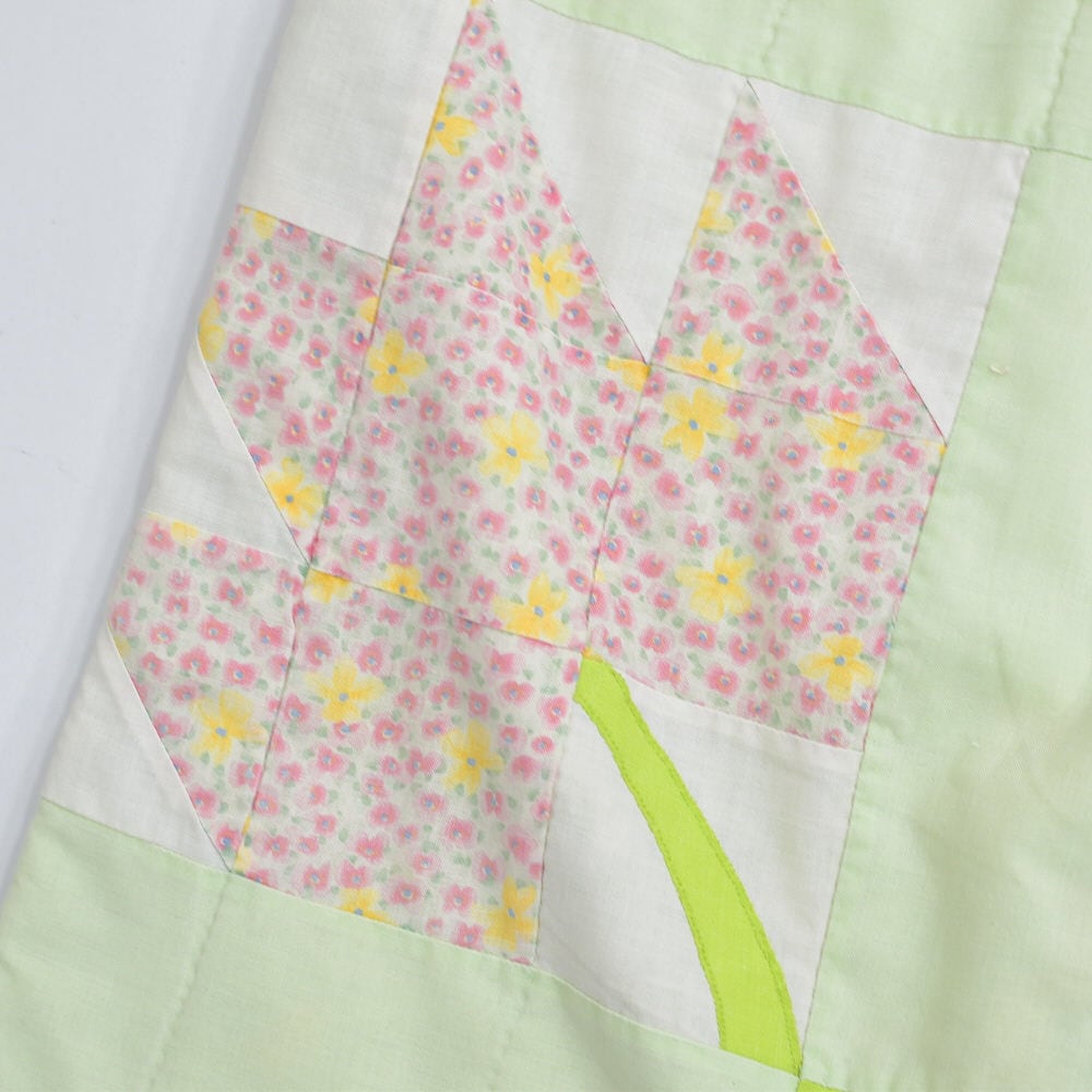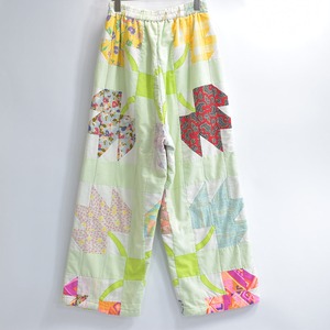 Remake リメイク ハンドメイド デザイン パッチワークキルト ルーズシルエット イージーパンツ 中綿入 再構築 ツギハギ ホワイト パステル グリーン W64〜102cm