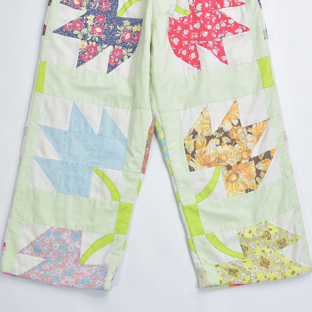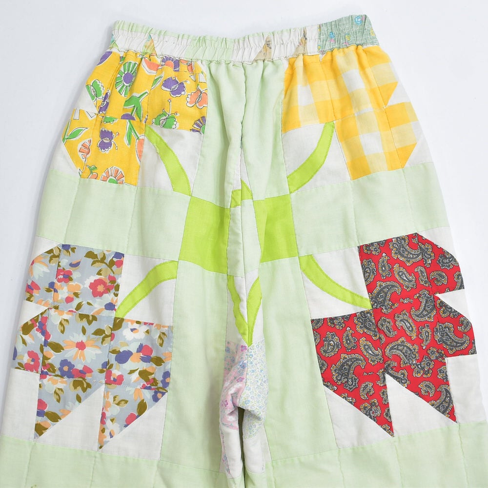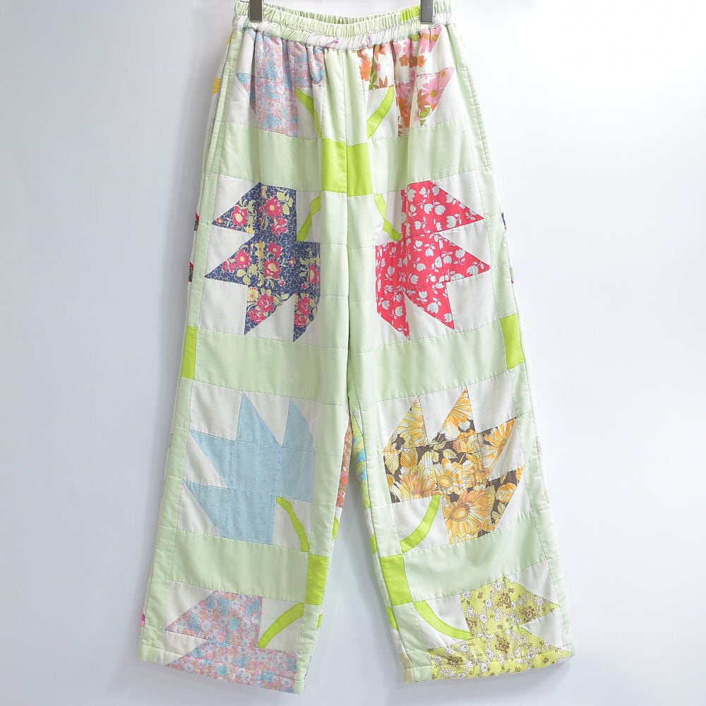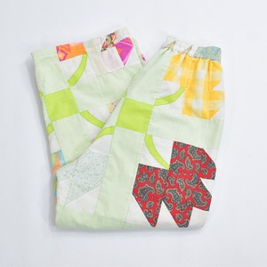 Remake リメイク ハンドメイド デザイン パッチワークキルト ルーズシルエット イージーパンツ 中綿入 再構築 ツギハギ ホワイト パステル グリーン W64~102cm