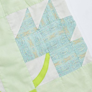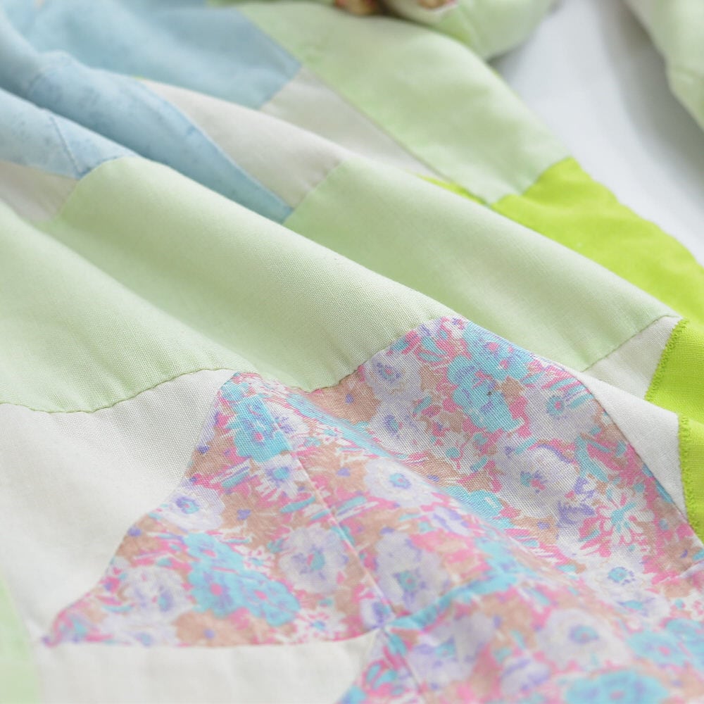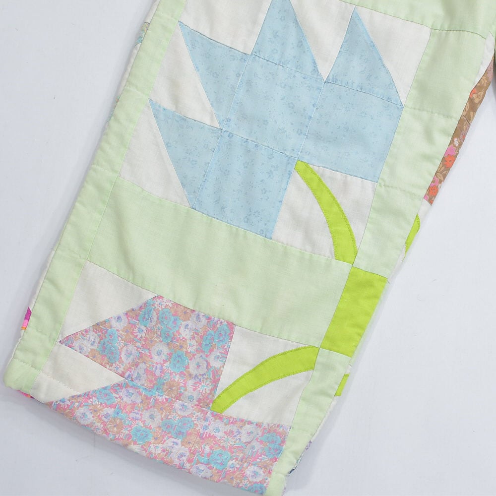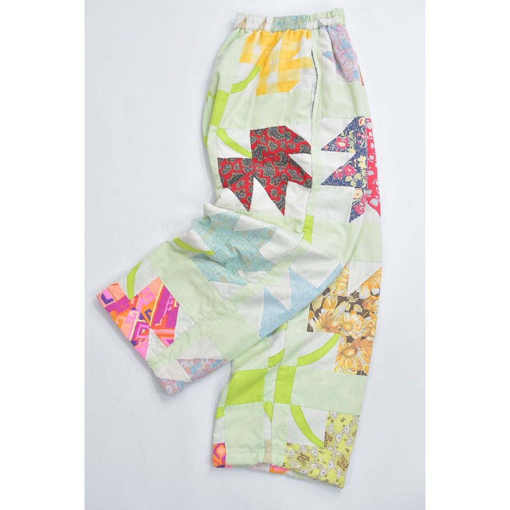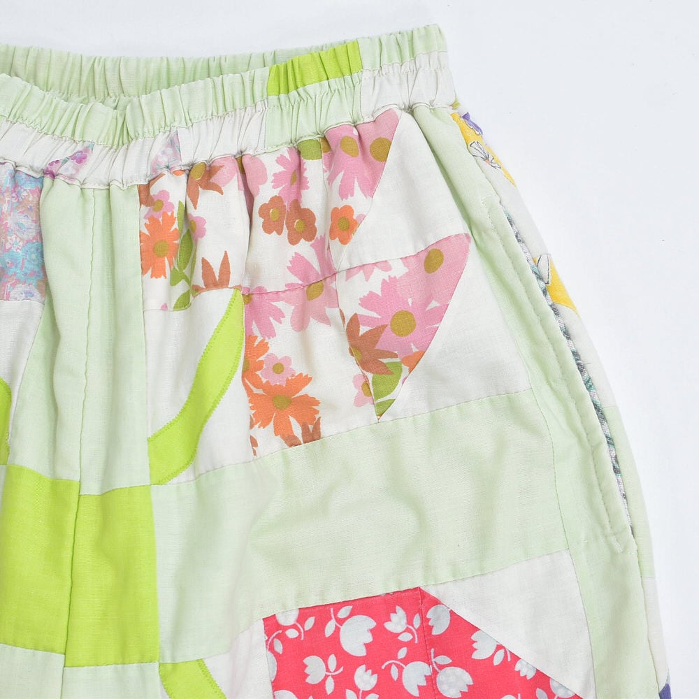 Remake リメイク ハンドメイド デザイン パッチワークキルト ルーズシルエット イージーパンツ 中綿入 再構築 ツギハギ ホワイト パステル グリーン W64~102cm