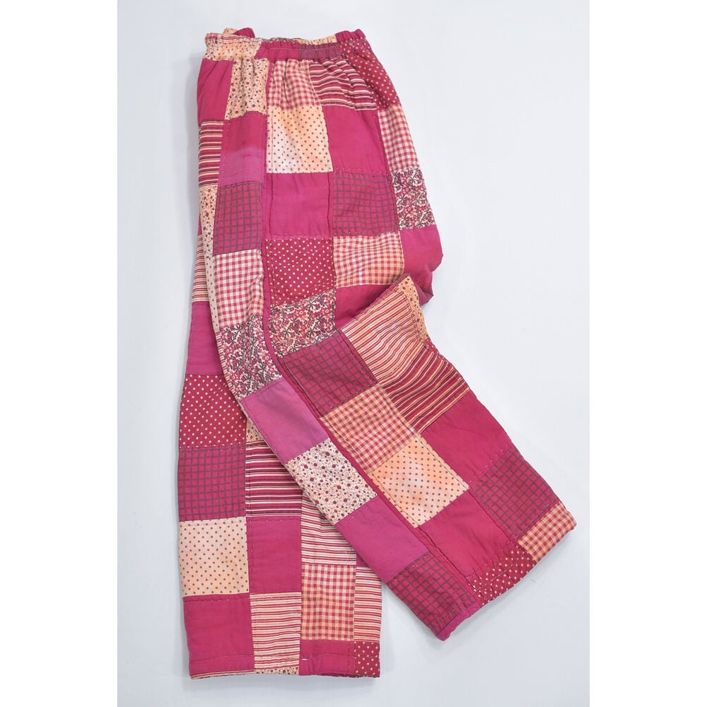 Remake リメイク ハンドメイド デザイン パッチワークキルト ワイドシルエット イージーパンツ ルーズシルエット ワインレッド 再構築 ツギハギ W68~104cm