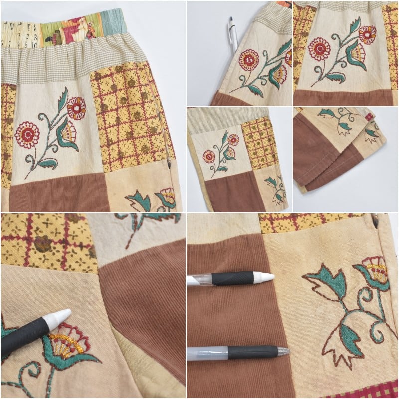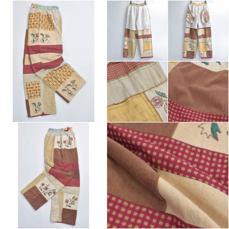 Remake リメイク ハンドメイド 刺繍 パッチワークデザイン ルーズシルエット イージーパンツ 再構築 ツギハギ 裏地付き ユニセックスサイズ W63~94cm