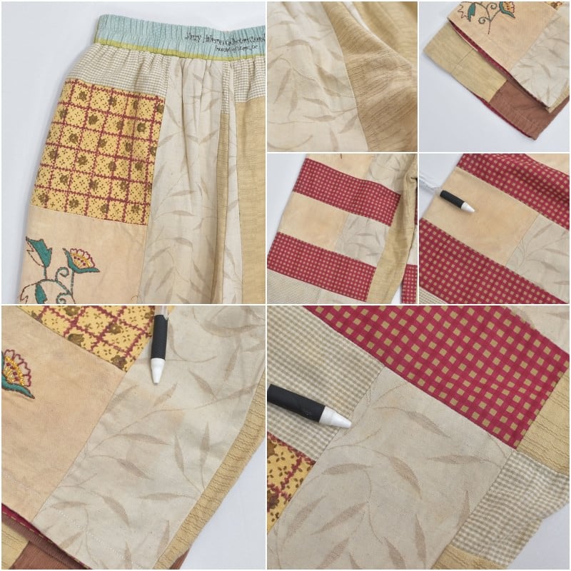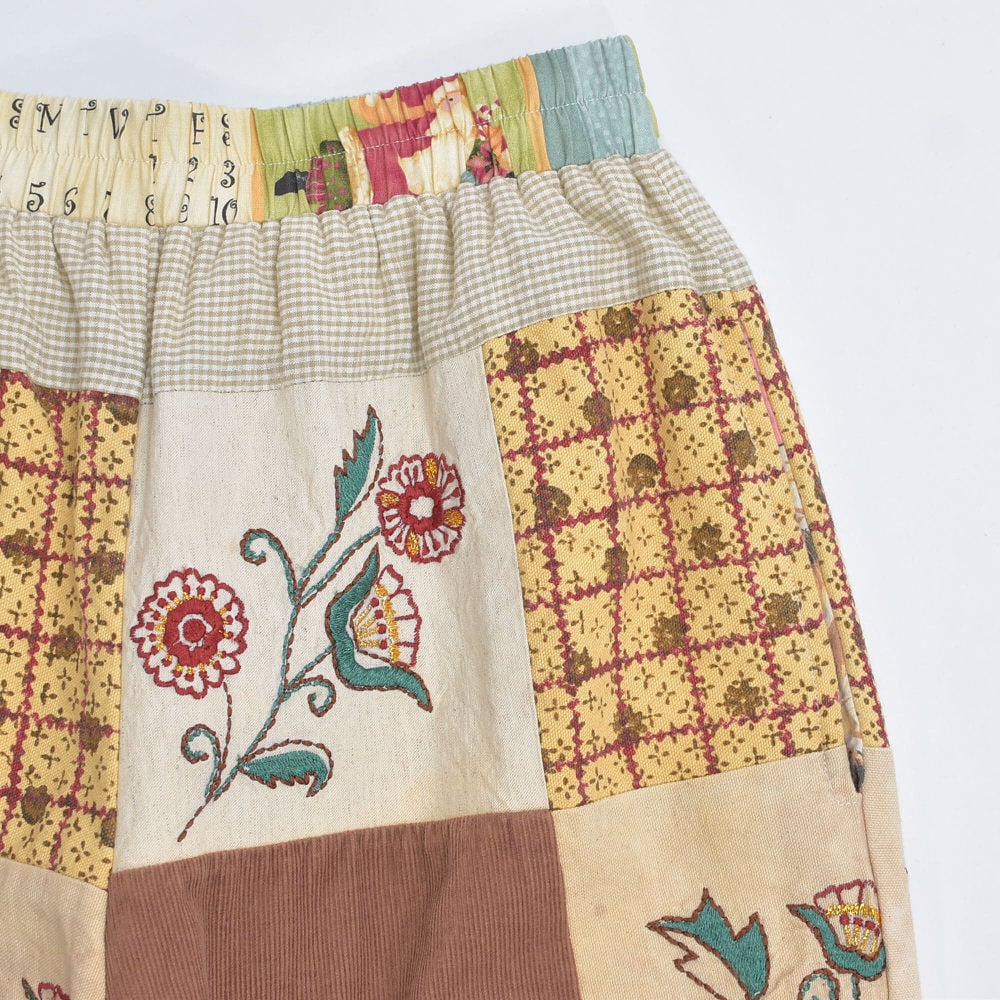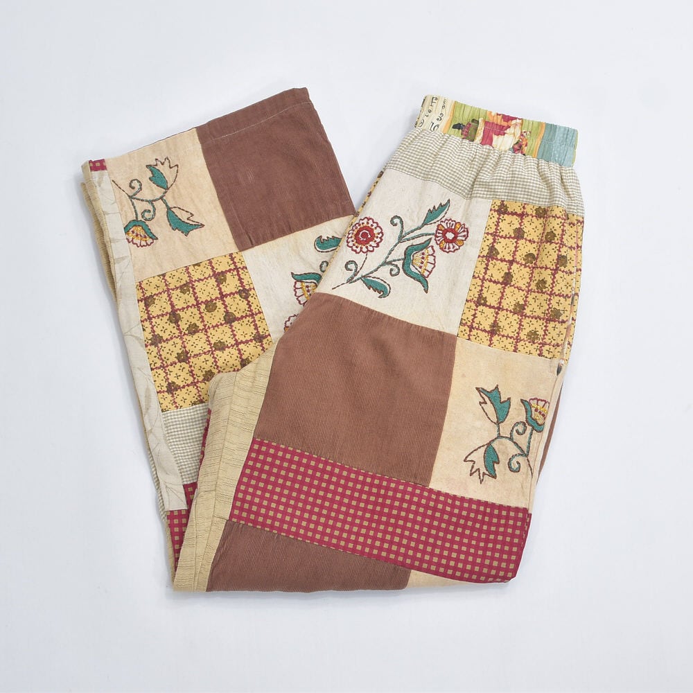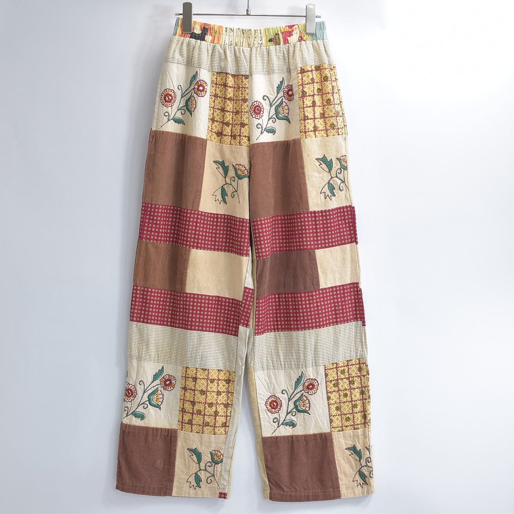 Remake リメイク ハンドメイド 刺繍 パッチワークデザイン ルーズシルエット イージーパンツ 再構築 ツギハギ 裏地付き ユニセックスサイズ W63〜94cm