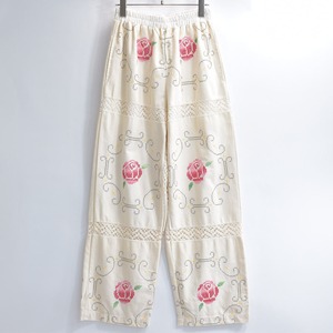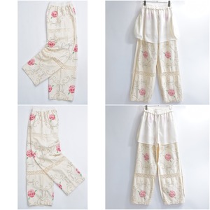 Remakeリメイク 再構築 パッチワーク フラワー刺繍 レース デザイン ルーズシルエット イージーパンツ アイボリー 裏地付き W63~95cm