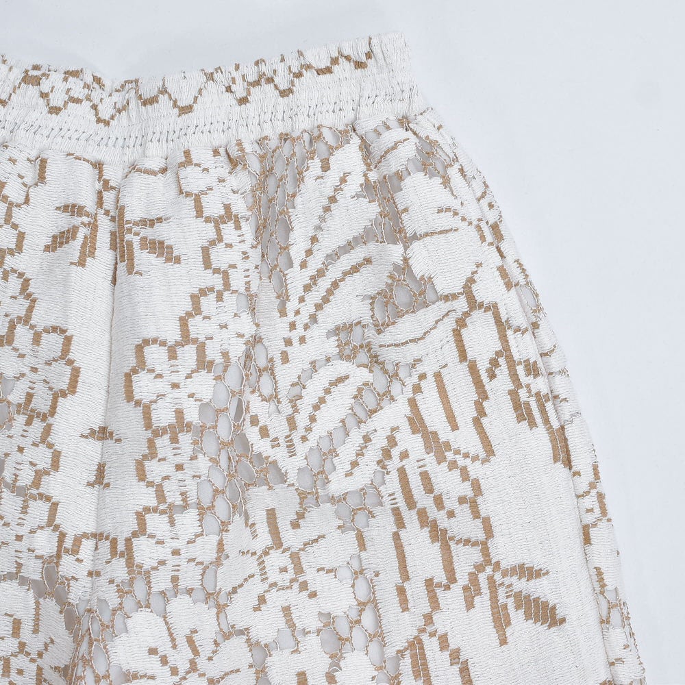 Remakeリメイク フラワーデザイン ラッセルレース ルーズシルエット イージーパンツ フローラル 花柄 パッチワーク オフホワイト 裏地付き W62〜92cm