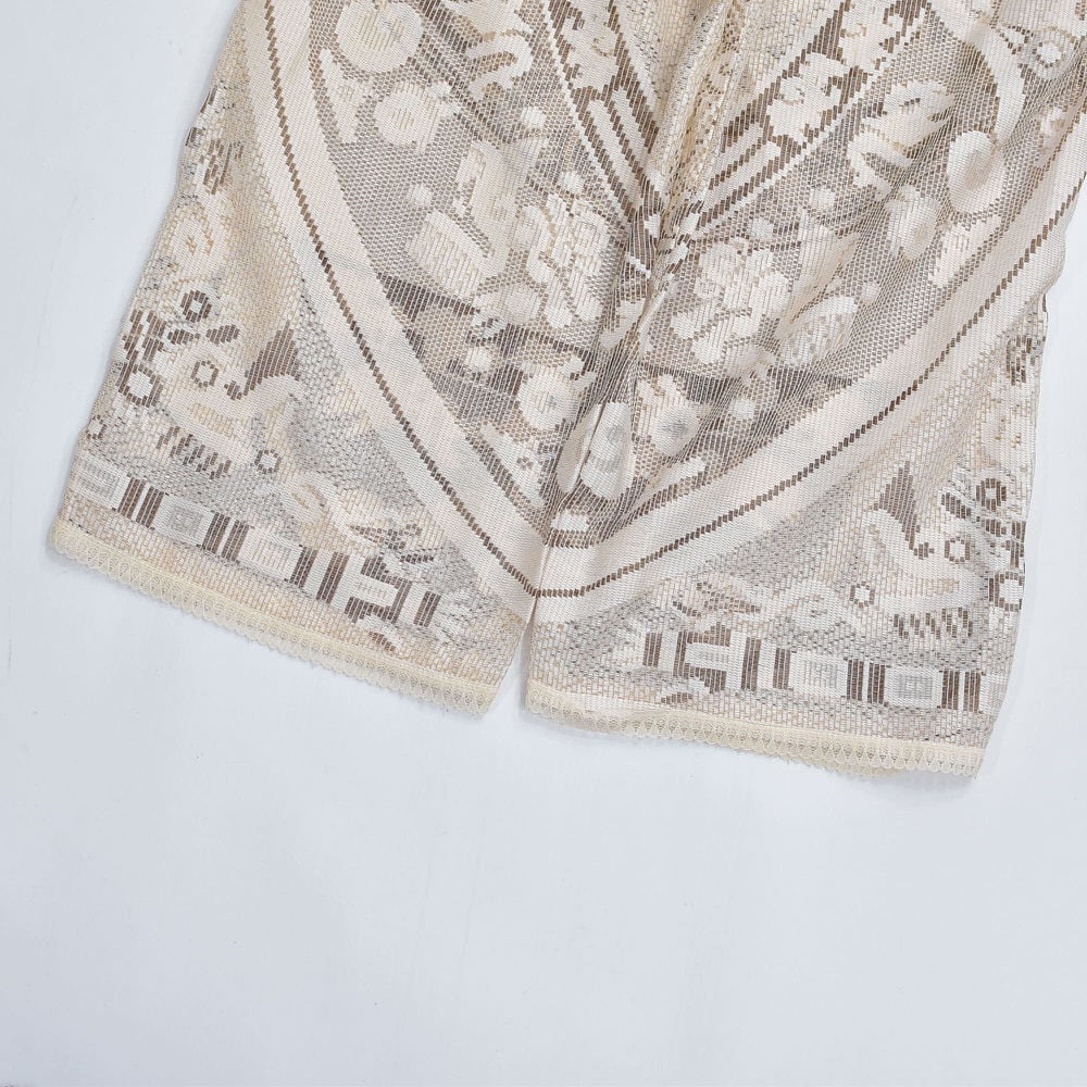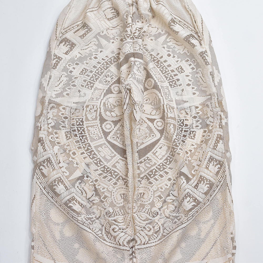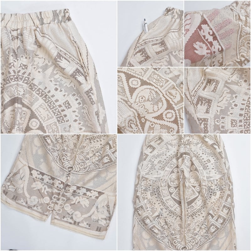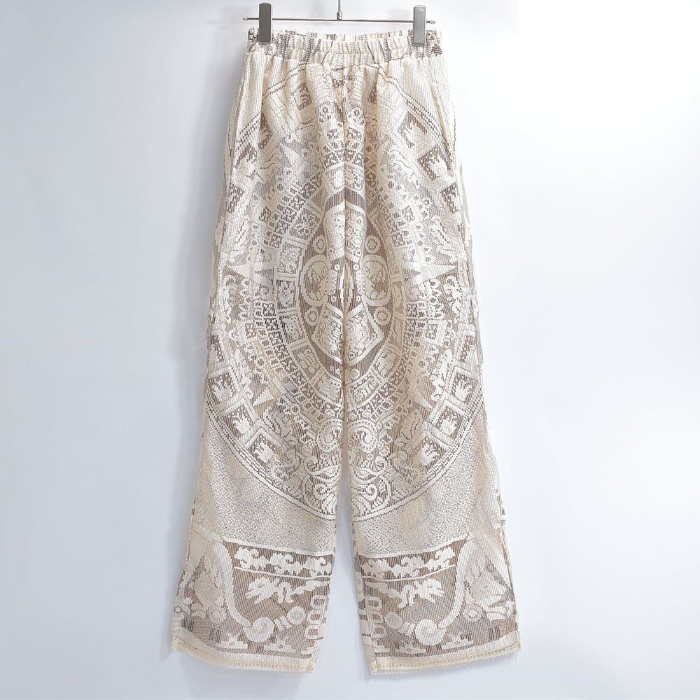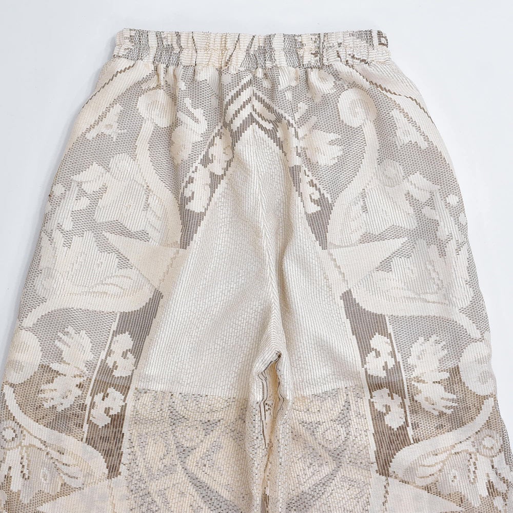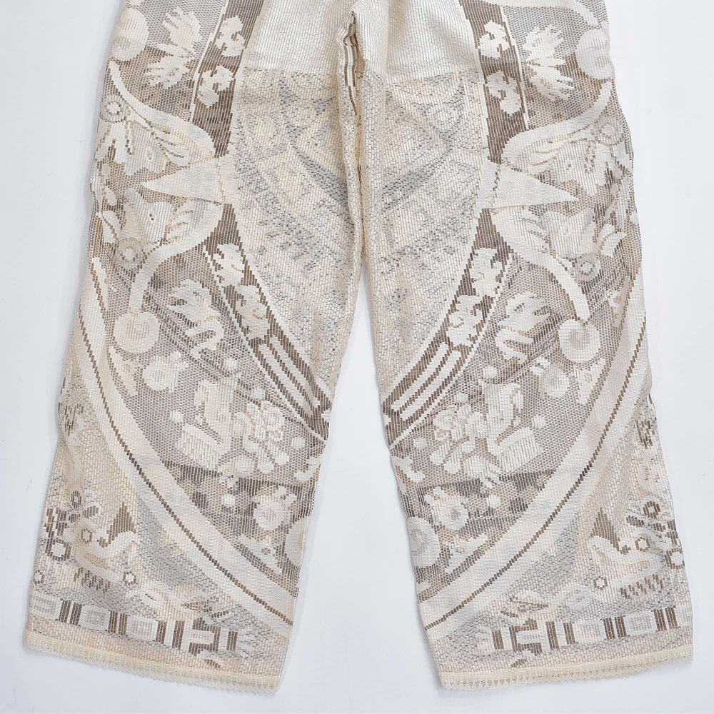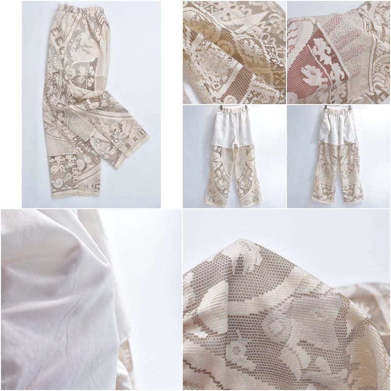 Remakeリメイク ジオメトリック デザイン ラッセルレース ルーズシルエット イージーパンツ 幾何学模様 パッチワーク ベージュ 裏地付き W62~96cm