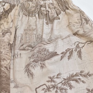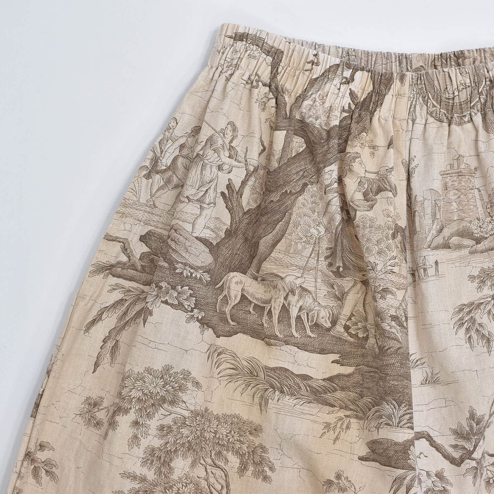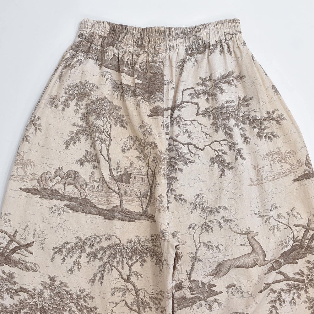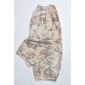 Remake リメイク ハンドメイド トワル・ド・ジュイ柄 テキスタイル バルーンシルエット イージーパンツ 再構築 ユニセックスサイズ ベージュ W65〜104cm