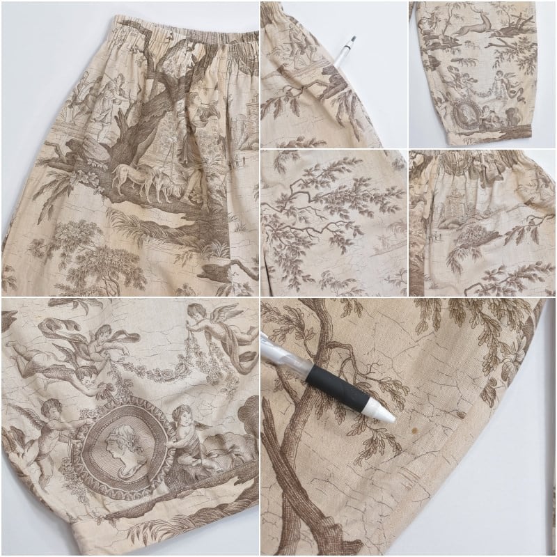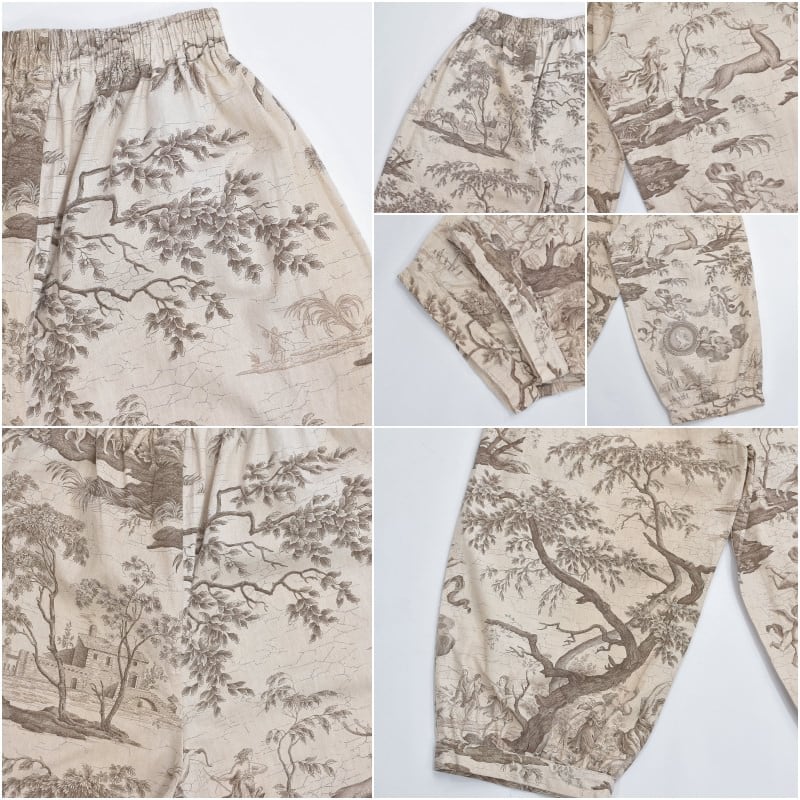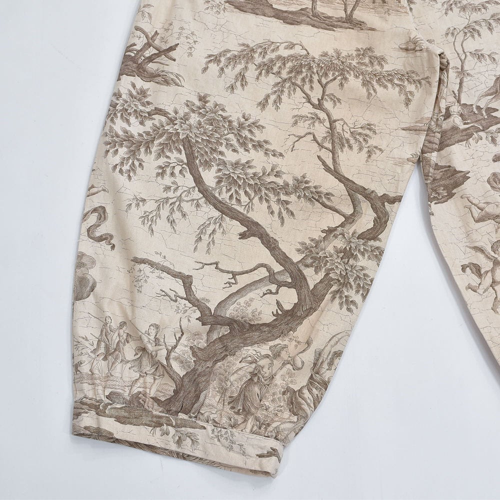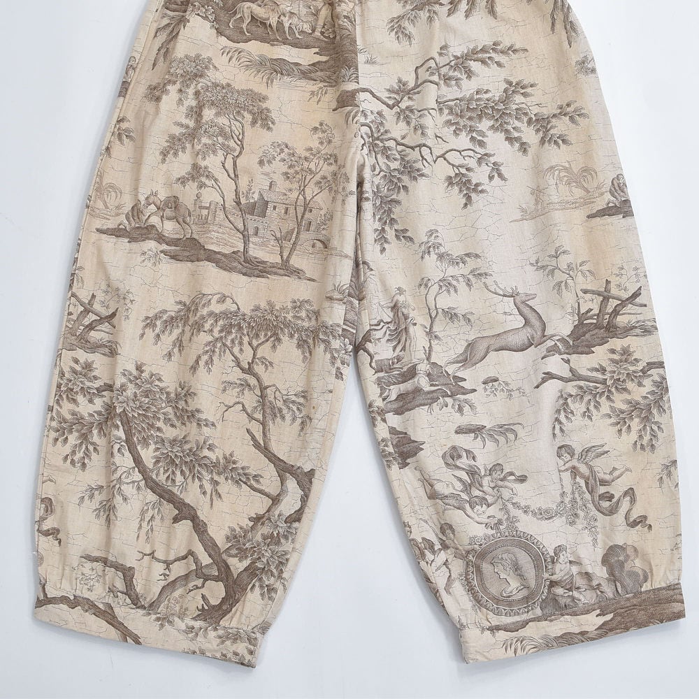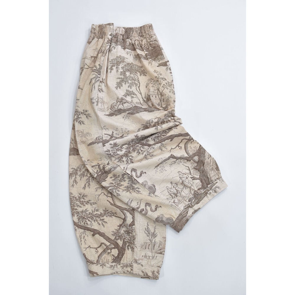 Remake リメイス ハンドメイド トワル・ド・ジュイ柄 テキスタイル バルーンシルエット イージーパンツ 再構築 ユニセックスサイズ ベージュ W65~104cm
