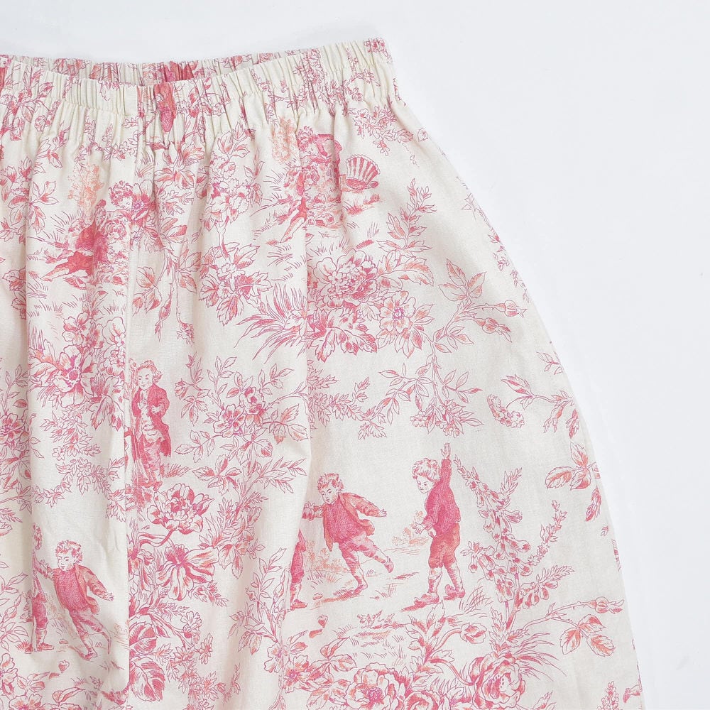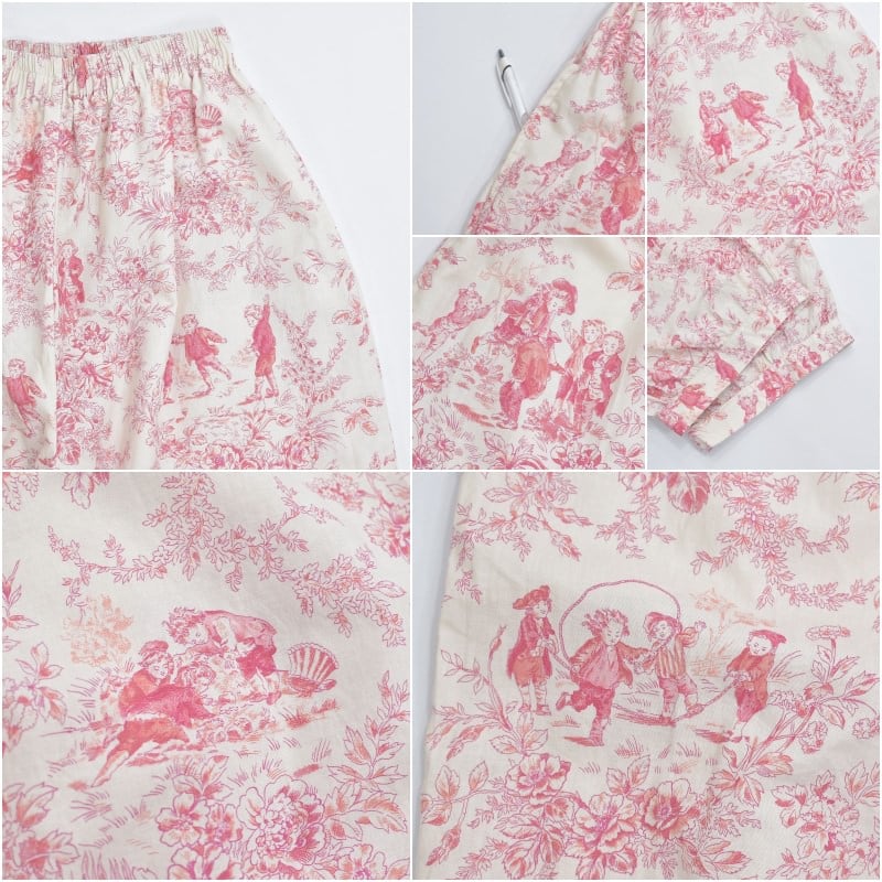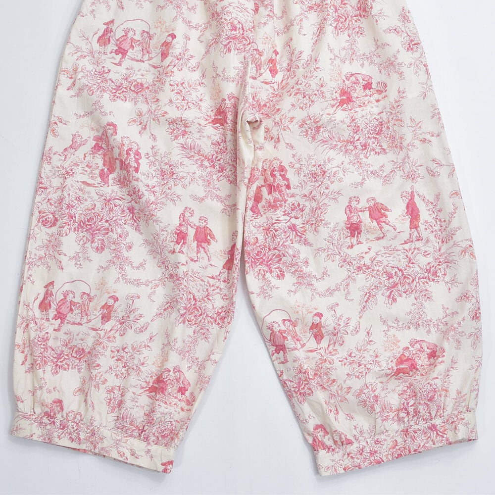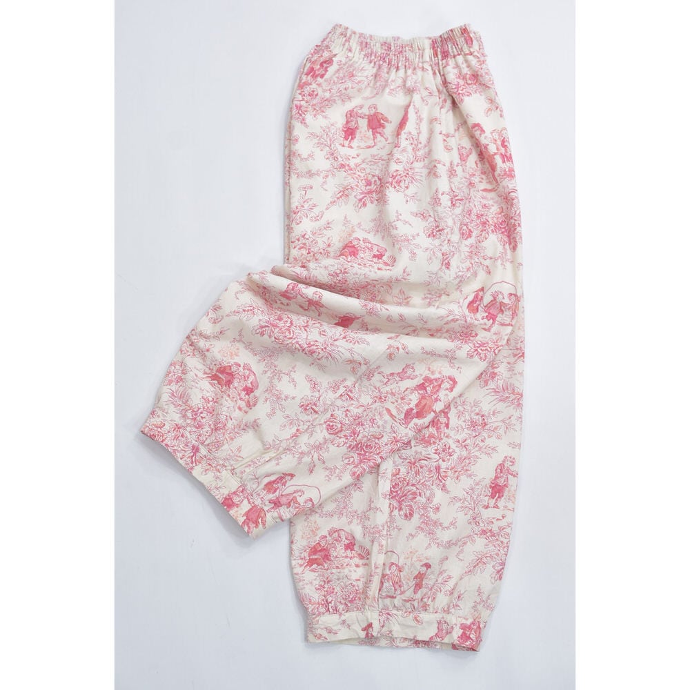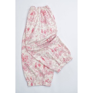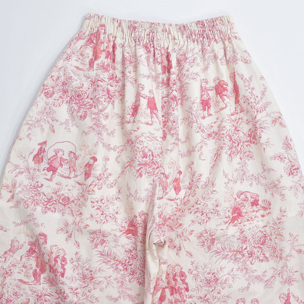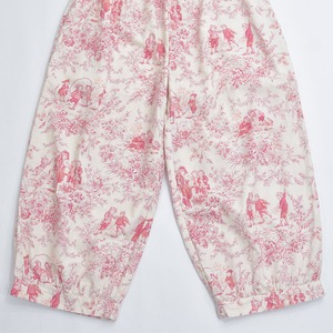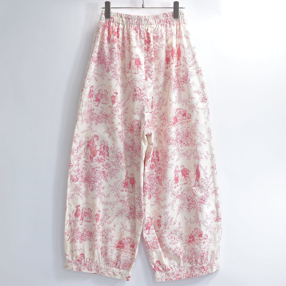 Remake リメイク ハンドメイド トワル・ド・ジュイ柄 テキスタイル バルーンシルエット イージーパンツ 再構築 ユニセックスサイズ オフホワイト 裏地付き W63〜102cm