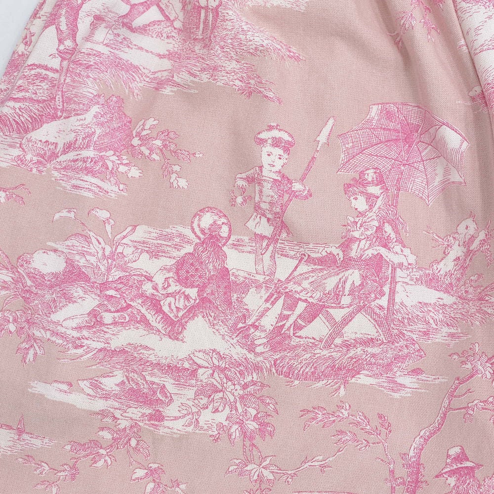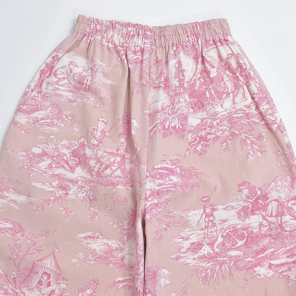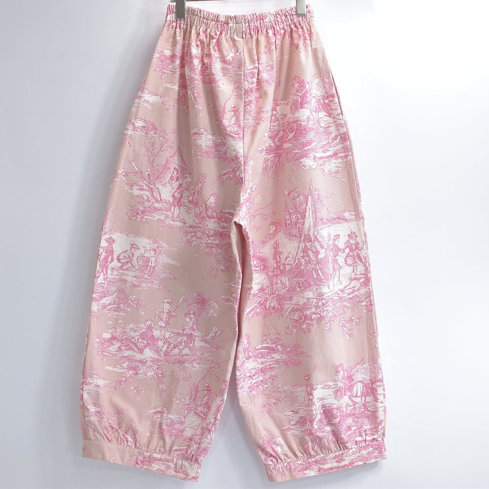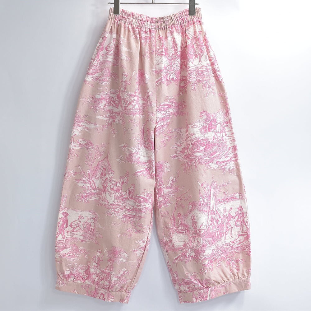 Remake リメイク ハンドメイド トワル・ド・ジュイ柄 テキスタイル バルーンシルエット イージーパンツ 再構築 ユニセックスサイズ ピンク ベージュ W65〜102cm