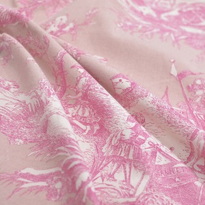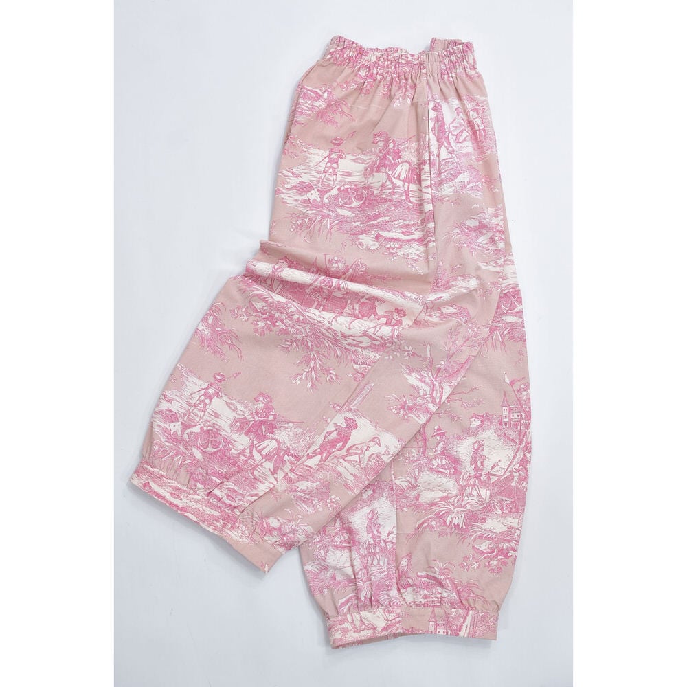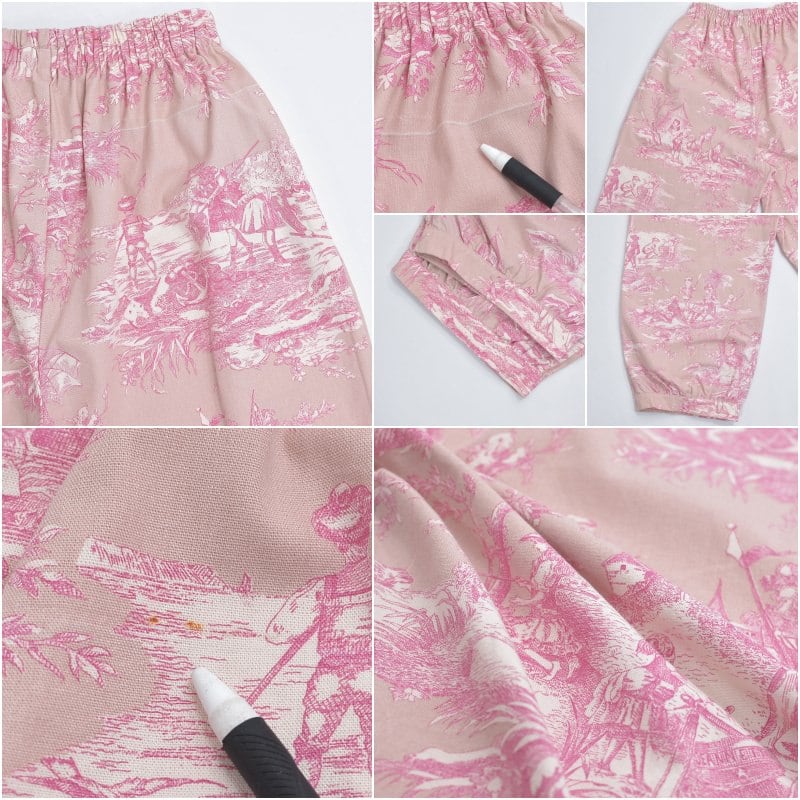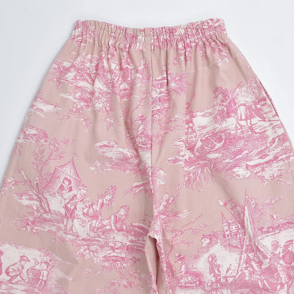 Remake リメイス ハンドメイド トワル・ド・ジュイ柄 テキスタイル バルーンシルエット イージーパンツ 再構築 ユニセックスサイズ ピンク ベージュ W65~102cm