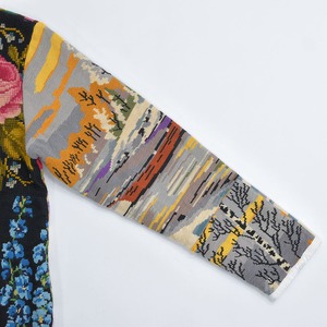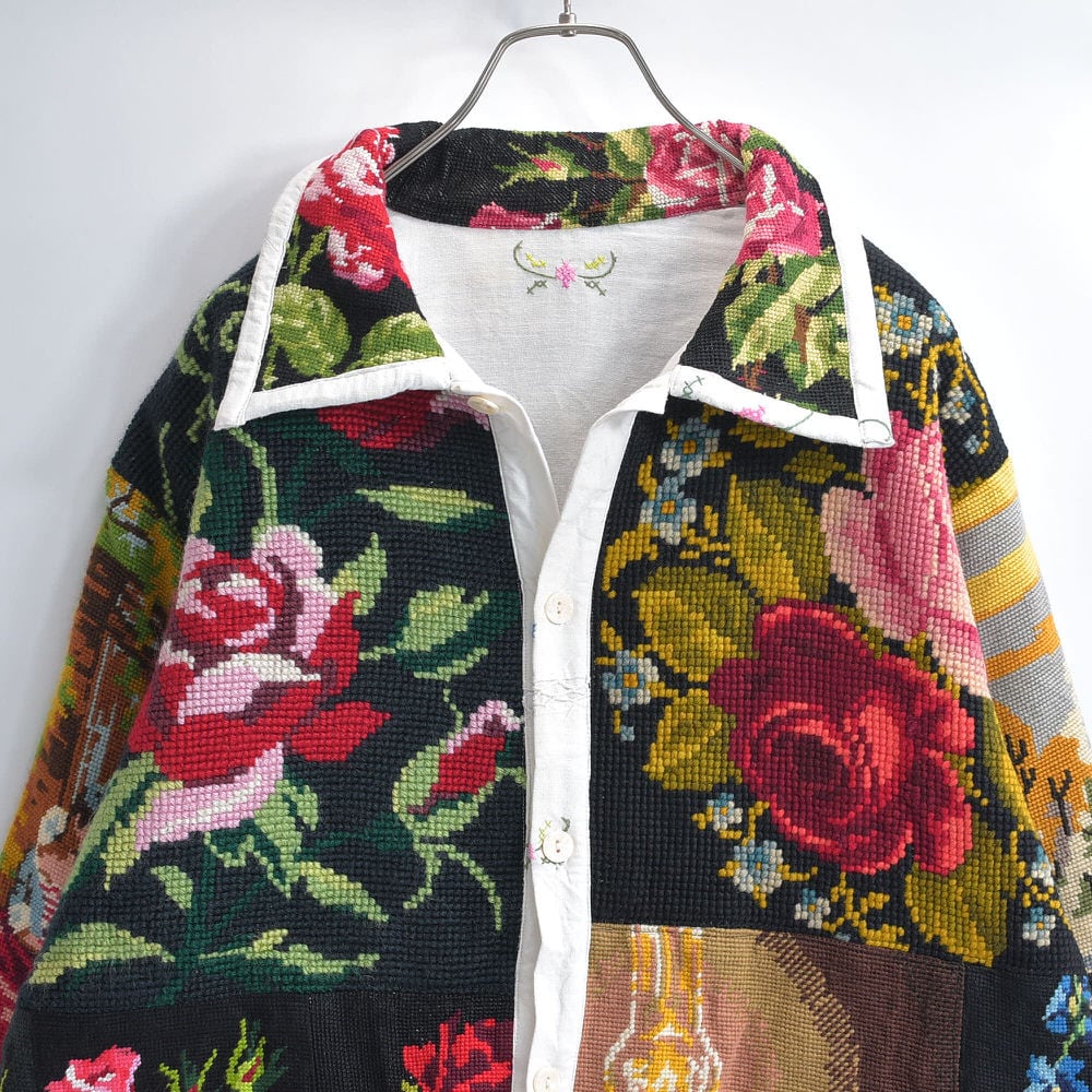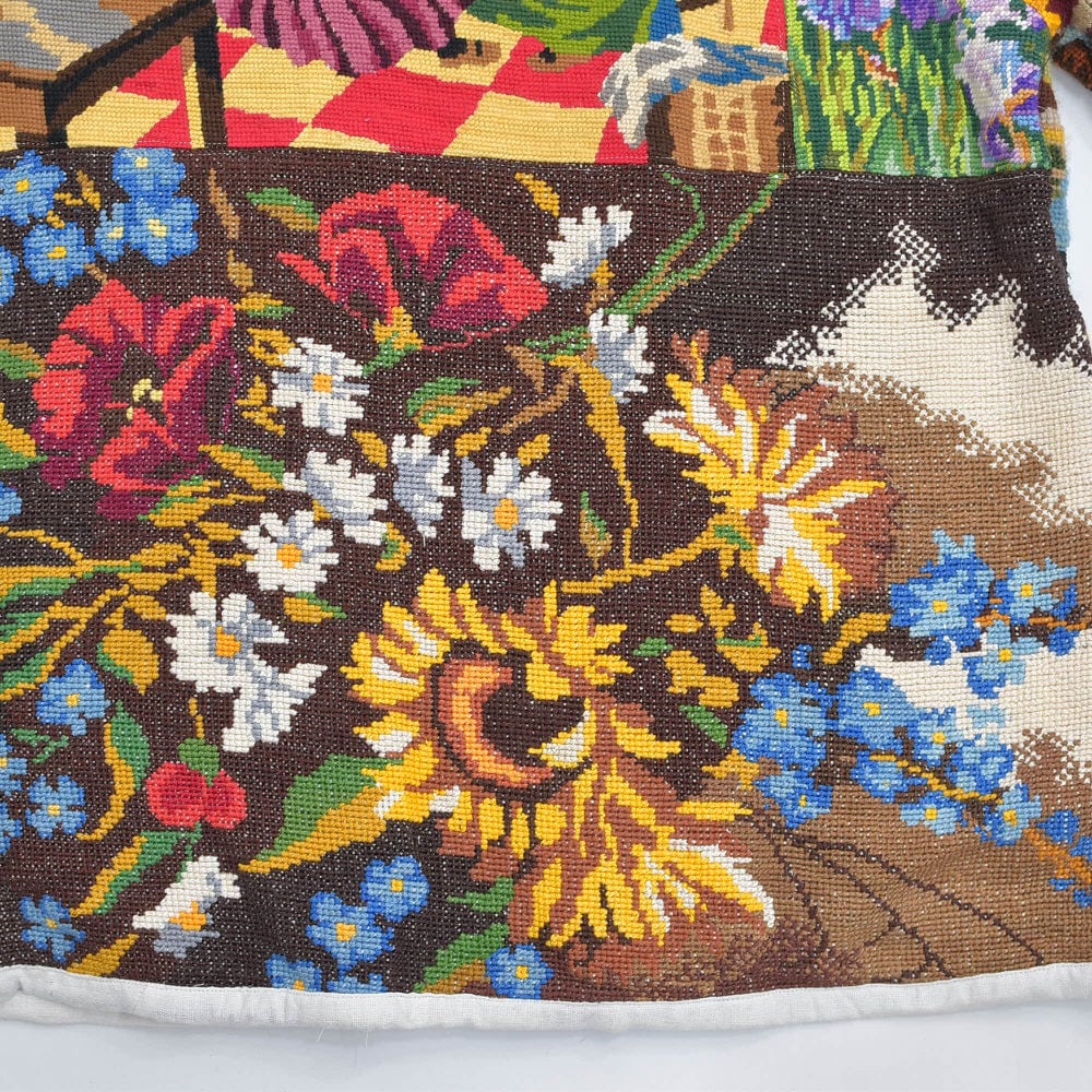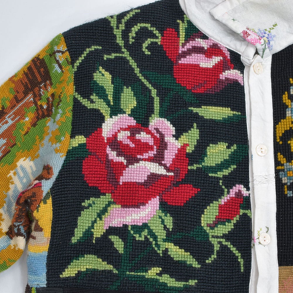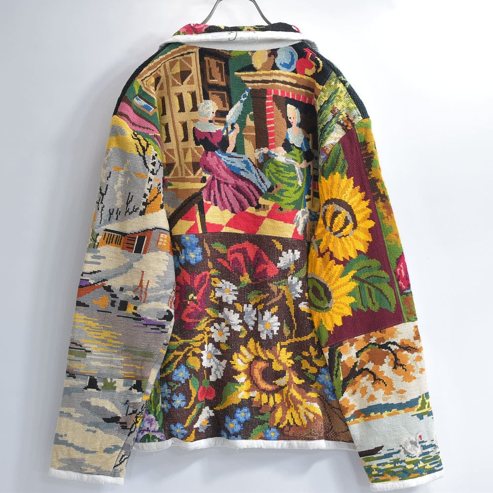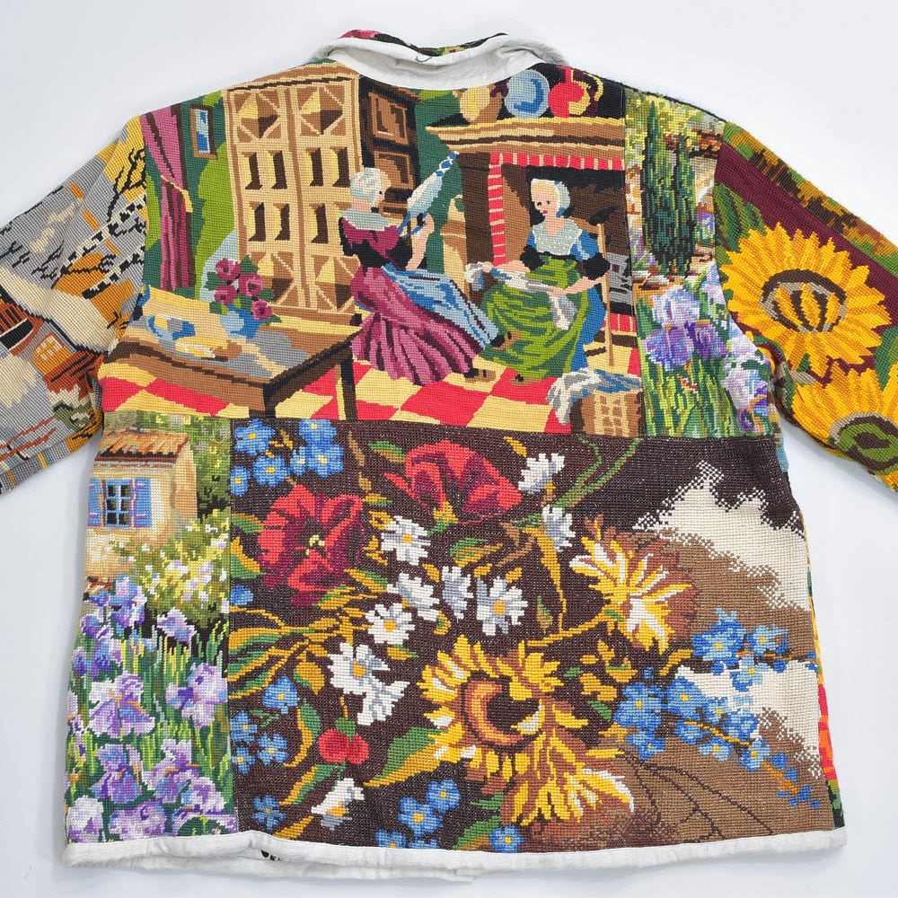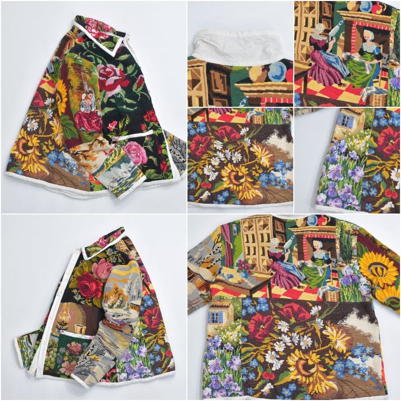 Remakeリメイク ハンドメイド テキスタイル パッチワーク デザイン 再構築 ジャケット ツギハギ 手織り クロスステッチ ユニセックスデザイン メンズL相当 レディースXL相当